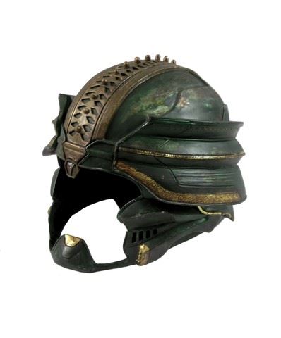 From the feature Dracula Untold (2014) is a screen used soldier's helmet. This is a black and gold molded helmet. (approx. 10" x 9")