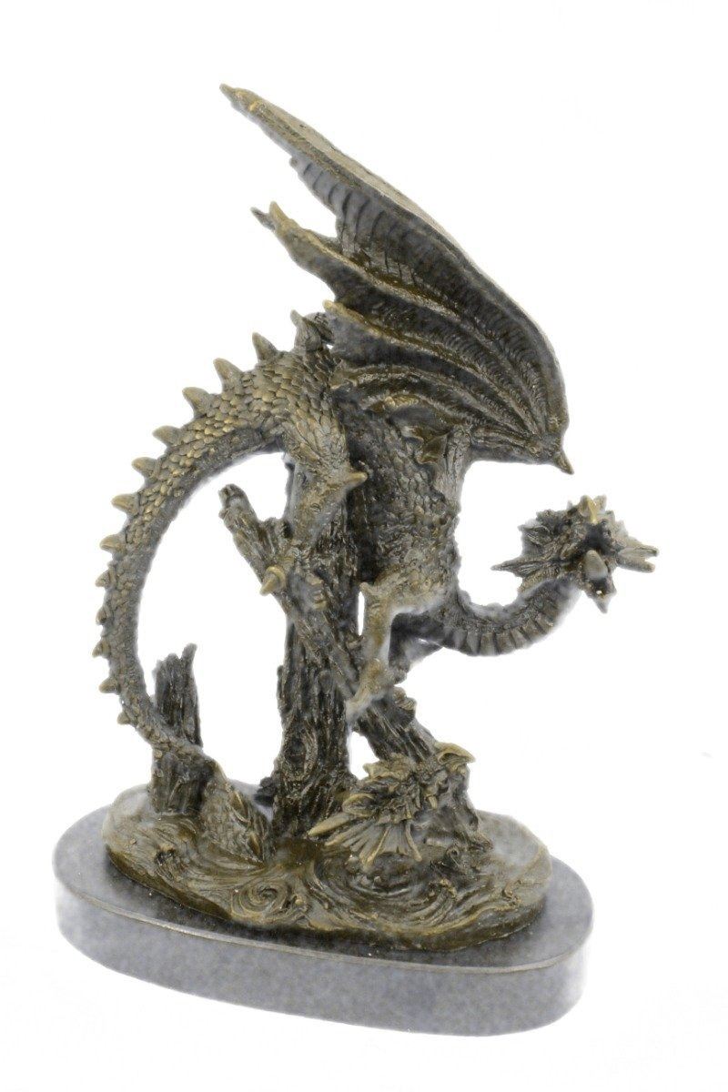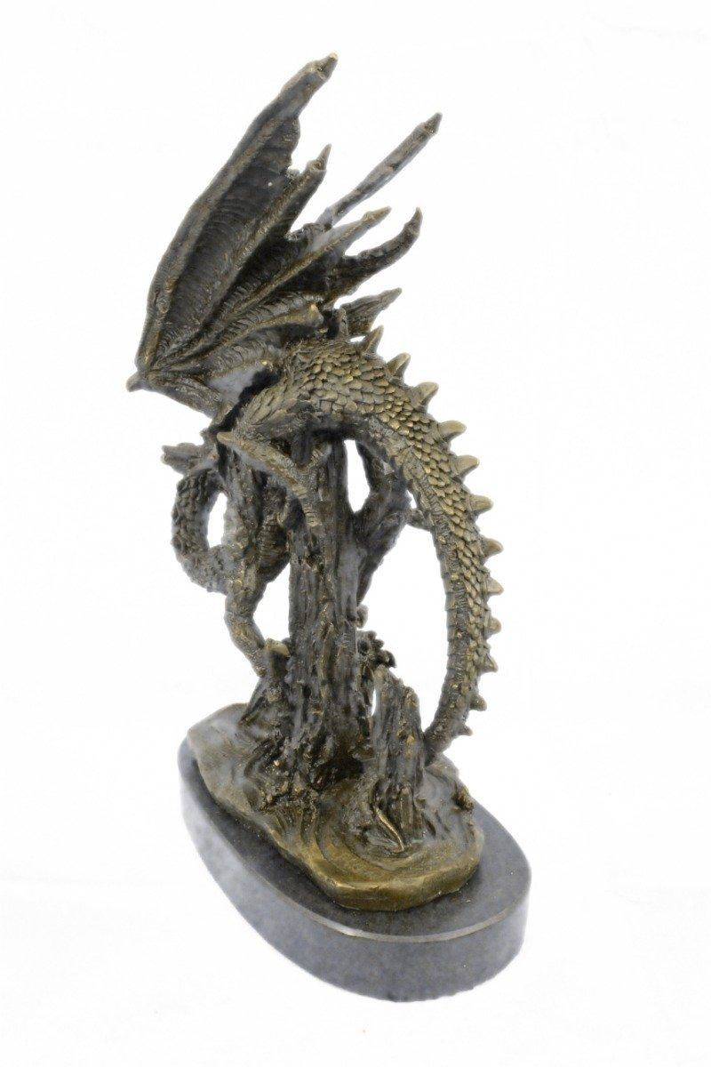 Some myths portray them with a row of dorsal spines. European Dragons are more often winged, while Chinese dragons resemble large snakes. Dragons can have a variable number of legs, none, two, four, or more when it comes to early European literature. Dragons are often held to have major spiritual significance in various religions and cultures around the world. In many Asian cultures dragons were, and in some cultures still are, revered as representative of the primal forces of nature, religion and the universe. They are associated with wisdom often said to be wiser than humans and longevity. They are commonly said to possess some form of magic or other supernatural power, and are often associated with wells, rain, and rivers. In some cultures, they are also said to be capable of human speech. In some traditions dragons are said to have taught humans to talk. This handmade Bronze Sculpture was cast using the archaic method of lost wax casting and stained with a brown patina finish for perpetuation. It is mounted upon a marble base. Bronze Dimensions with Marble Base: Height 12 X Width 8 inches. Weight: 12 LBS.