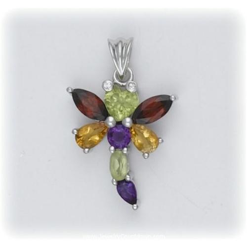 Solid Sterling Silver Genuine Garnet Dragonfly Necklace Citrine Amethyst Peridot Topaz