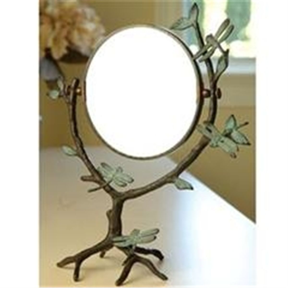 Dragonfly On Branch Table Mirror -15h - Brass & Glass