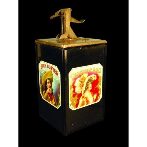 Drake Manufacturing Co. Cigar Lighter, Spark Jump, Has four new/old stock cigar labels on the sides, 6 inches square and 13 inches tall.