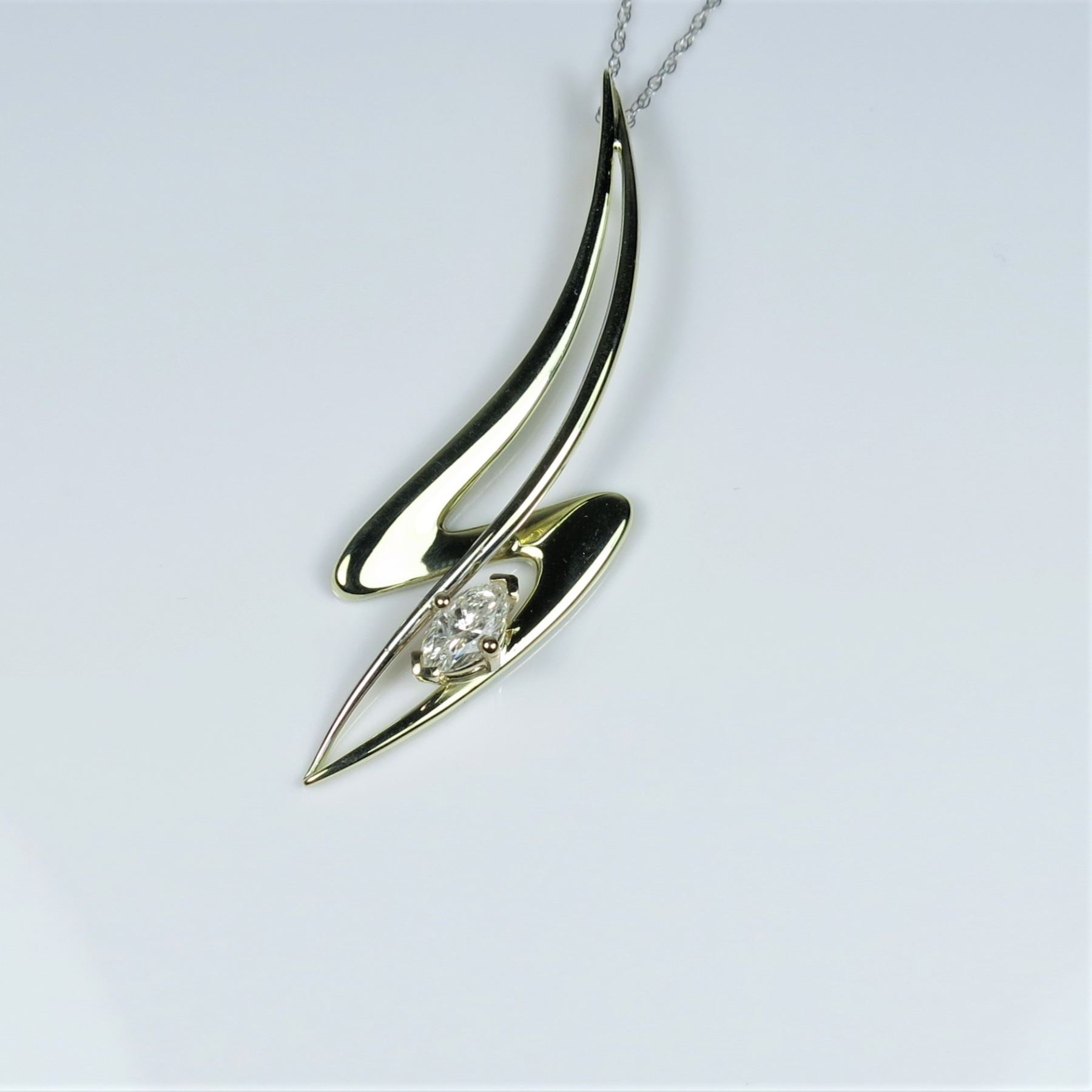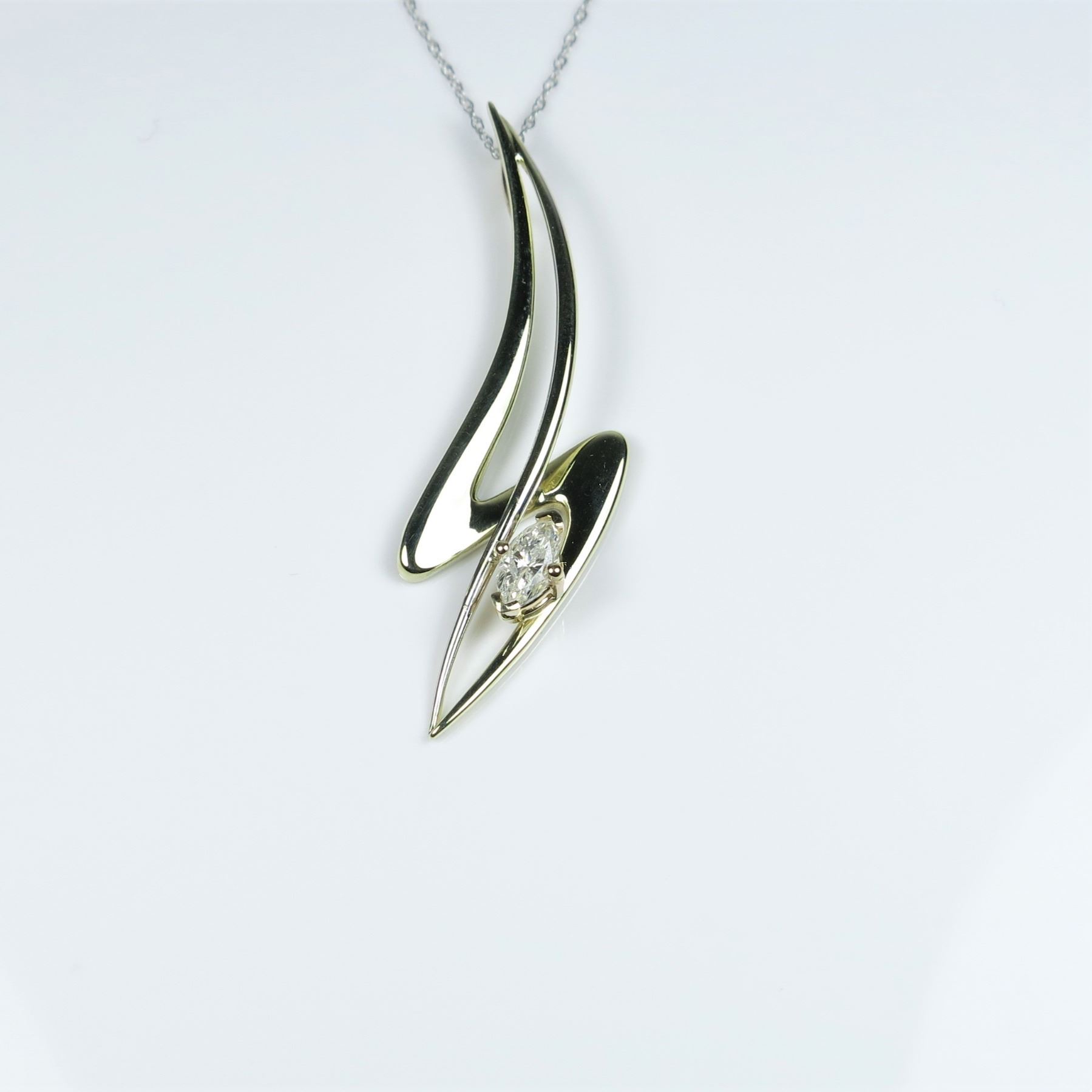 Dramatic Modern Style Marquise cut Diamond Pendant featuring an approx. 0.70 carat Diamond with G-H color set in a 14 karat two-tone gold setting. Retail $3,000-$4,000 Estimates $1,500-$2,000