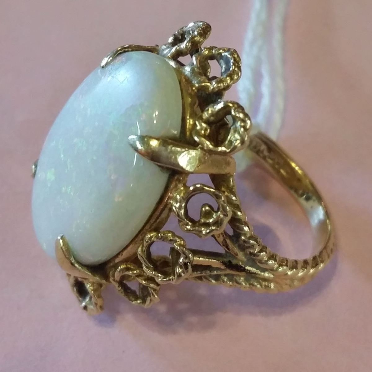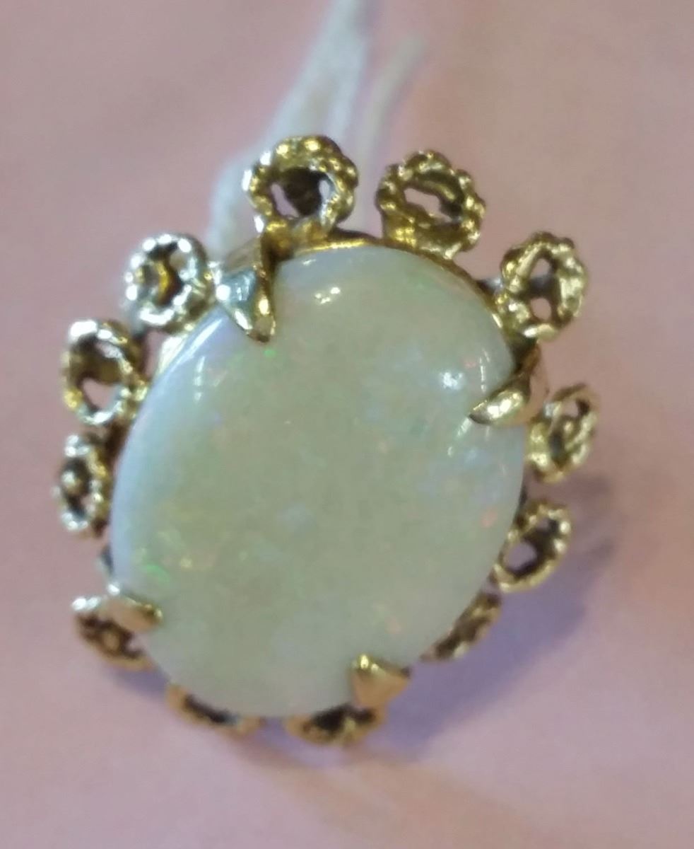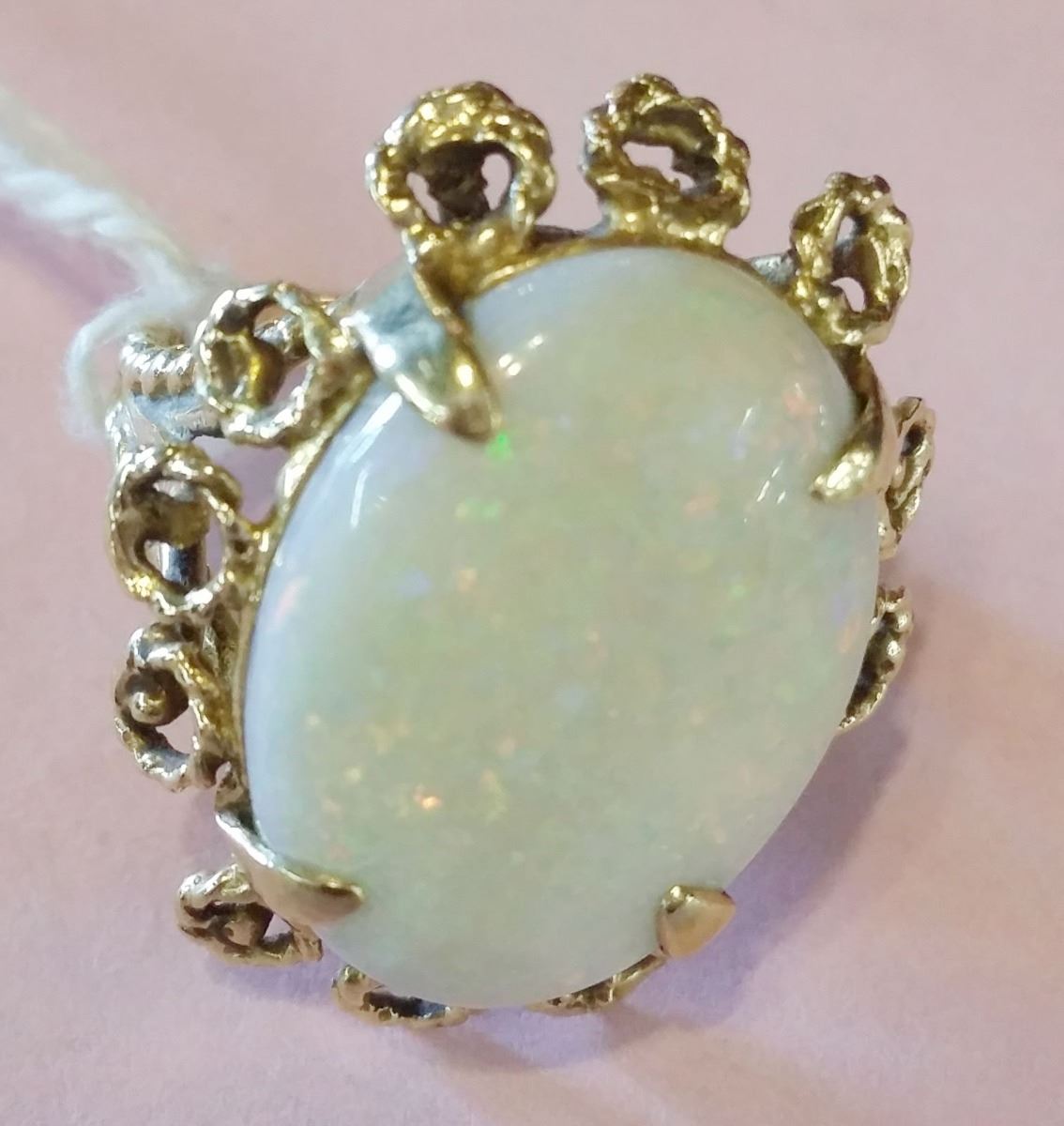 Vintage Dramatic Size Australian Opal Crystal with Multi-Fire Colors & Gold Ring