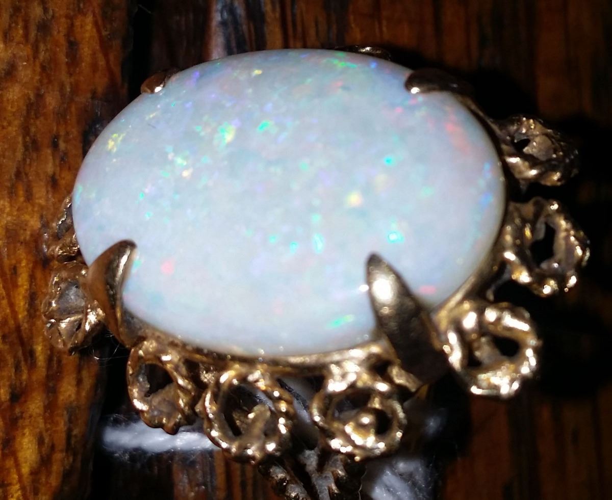 Vintage Dramatic Size Australian Opal Crystal with Multi-Fire Colors & Gold Ring