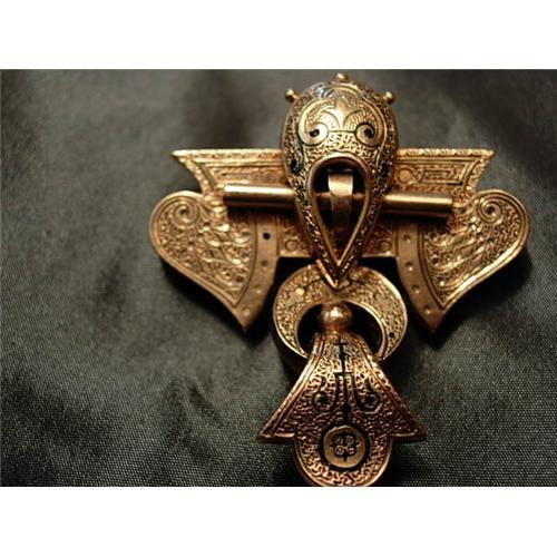 <table width="100%" border="0" cellspacing="0" cellpadding="4"><tr><td><em> </em></td></tr><tr> <td width="100%"> Dramatic Victorian Circa 1870 yellow gold and black enamel tracery brooch intricately decorated with wonderful engraved features highlighted with black enamel tracery throughout lovely design and size great condition reverse: c-catch, tube hinge pin stem, hook (can hang something off of this piece such as a watch if you wish) WONDERFUL ANTIQUE BROOCH </td></tr><tr> <td> </td></tr><tr> <td>Reference #: BR62</td></tr><tr><td>Condition:very good</td></tr><tr><td>Year:circa 1870</td></tr><tr><td>Height:1 1/2" blocked on average</td></tr><tr><td>Title:Dramatic Victorian Yellow Gold and Black</td></tr><tr><td>Location:Chicago Illinois</td></tr></table>