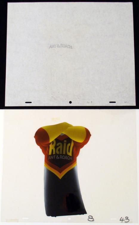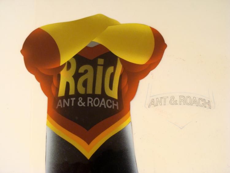Raid Ant has been a family owned company since 1886 and been killing bugs ever since then. Offered here is a original production cel and matching drawing from the Raid Ant Commercial. Be gone pesty insects, be gone... There is a