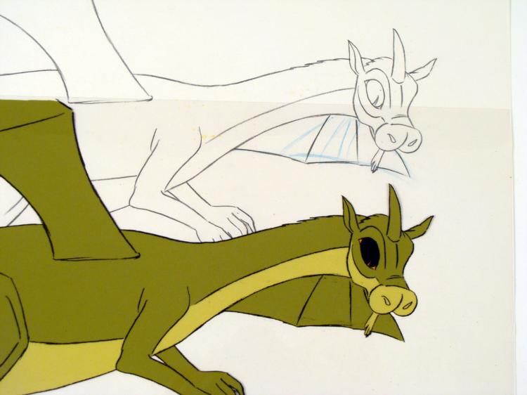 The Herculoids battled to defend their planet from menaces on Amzot/Quasar and from outer space. All of the Herculoids displayed Human-level intelligence - employing precision teamwork and complex tactics - as well as emotions, and Zandor and Tara both * displayed a working knowledge of complex alien technologies as well as the ability to pilot interstellar spacecraft—but essentially, Zandor, Tara, Dorno, and the Herculoids were fighting to keep Amzot/Quasar a technology-free, primitive planet. This is further * indicated by the pseudo-barbarian outfits of Zandor, Tara, and Dorno and the fact that technology was used mainly by the various villains, but rarely if ever by the heroes. Although the "speech" of their companions was limited and repetitive, Zandor, Tara * and Dorno demonstrated that Gloop and Gleep, at least, had a comprehensive mode of communication, and that they could at least understand and interpret this language. **The cel and drawing are at least 35 years old. Man, it feels really good to finally get * some fresh air... <ul type="disc"> * Original Animation and Drawing Original "rough" animation drawing, in black and non-photo blue pencil with the notations in black. * Overall Size of Drawing: 10 1/2" x 12 1/2" Overall Size of the Cel: 10 1/2" x 12 1/2" Excellent condition * This is an original hand-painted cel used in the production of an episode of "Herculoids." Each cel represents a slight change in position of the characters. When individually photographed and projected in rapid succession, the images appear to move. To * create production cels, the original animator's drawing is transferred onto an acetate cel (by hand-inking and/or photo copying). The cel is then hand-painted on the reverse side. * * * The drawing and cel are ready to be matted and framed. The notations are located at the bottom and the middle of the drawing and at the bottom of the cel.