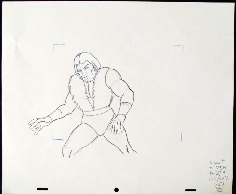 This is original animation drawing of an unidentified character from The Mighty Hercules TV show. Let's go... Bring it on... Original Animated Drawing Original "rough" animation drawing, in black and non-photo blue with the notations in blackOverall size is a 12-field drawing that is 10 1/2" × 12 1/2" Excellent condition Traditional animation is a multi-step process which includes various types of art techniques. Drawings are a key part of the process, in which the animator creates the design and movement of the characters. Drawings are then transferred onto acetate cels (by hand-inking and/or photo copying) to create a production cel, which is then hand painted on the back side, using paint colors chosen and approved by the creator of the series. The drawing is ready to be matted and framed. The animator's notations are located at the bottom of the drawing.