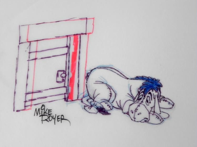 Offered here is an original Winnie the Pooh animation drawing of Eeyor signed by cartoon artist Mike Royer. Mike Royer helped launch a Winnie the Pooh licensing program in late 1993; for the latter, he was featured in a 43-minute video, How To Draw Pooh,