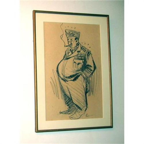paper by Pulitzer-prize winning cartoonist Bill Mauldin (1921-2003). An army major general smoking a cigar. Signed: B. Mauldin. Terrific example of Mauldin's trenchant yet affectionate satirical edge.