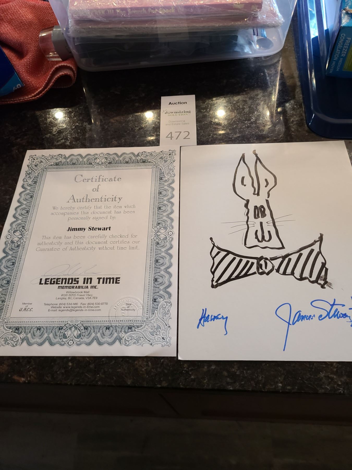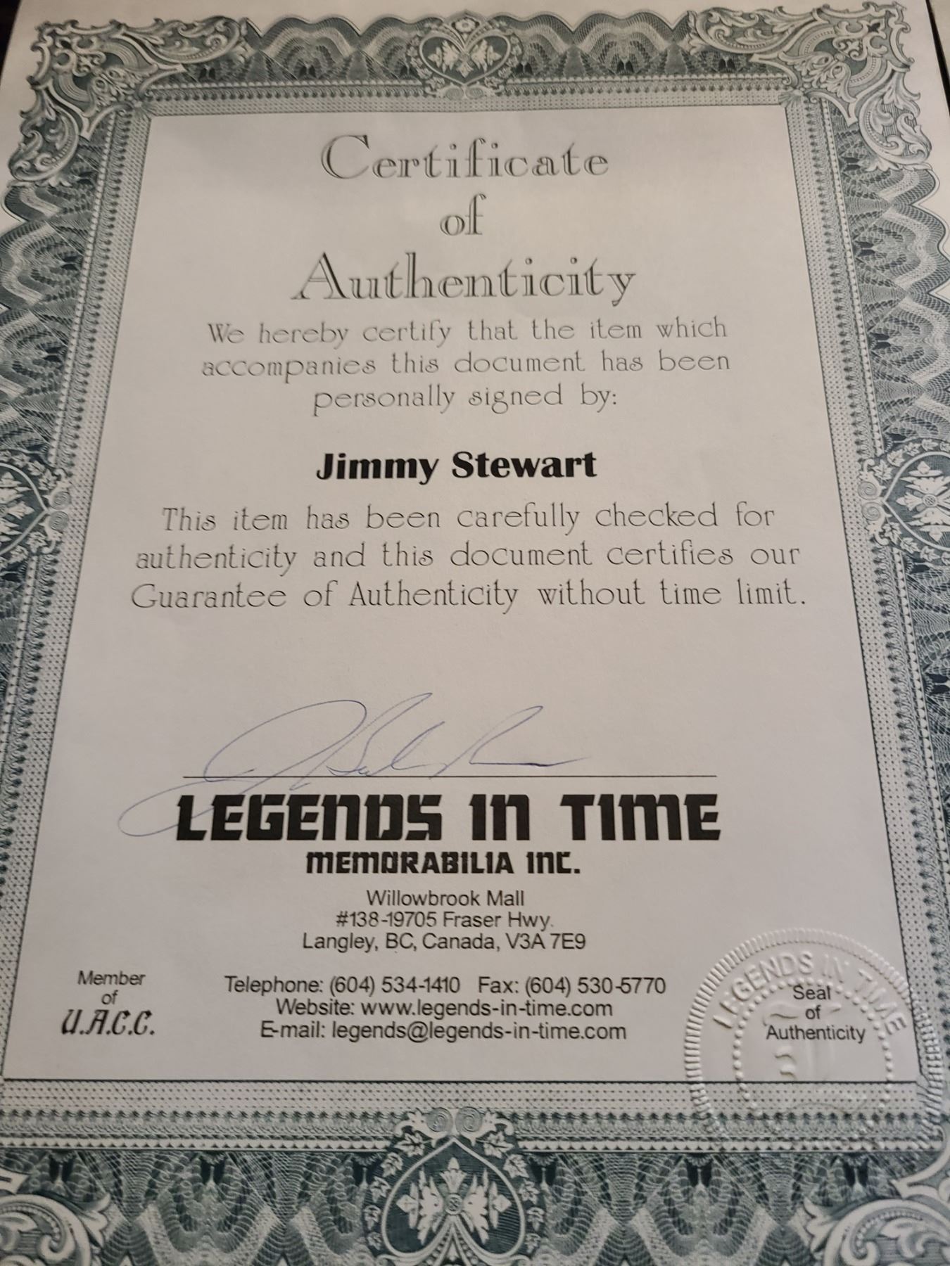 Certificate of Authenticity Jimmy Stewart Pickup at 9am