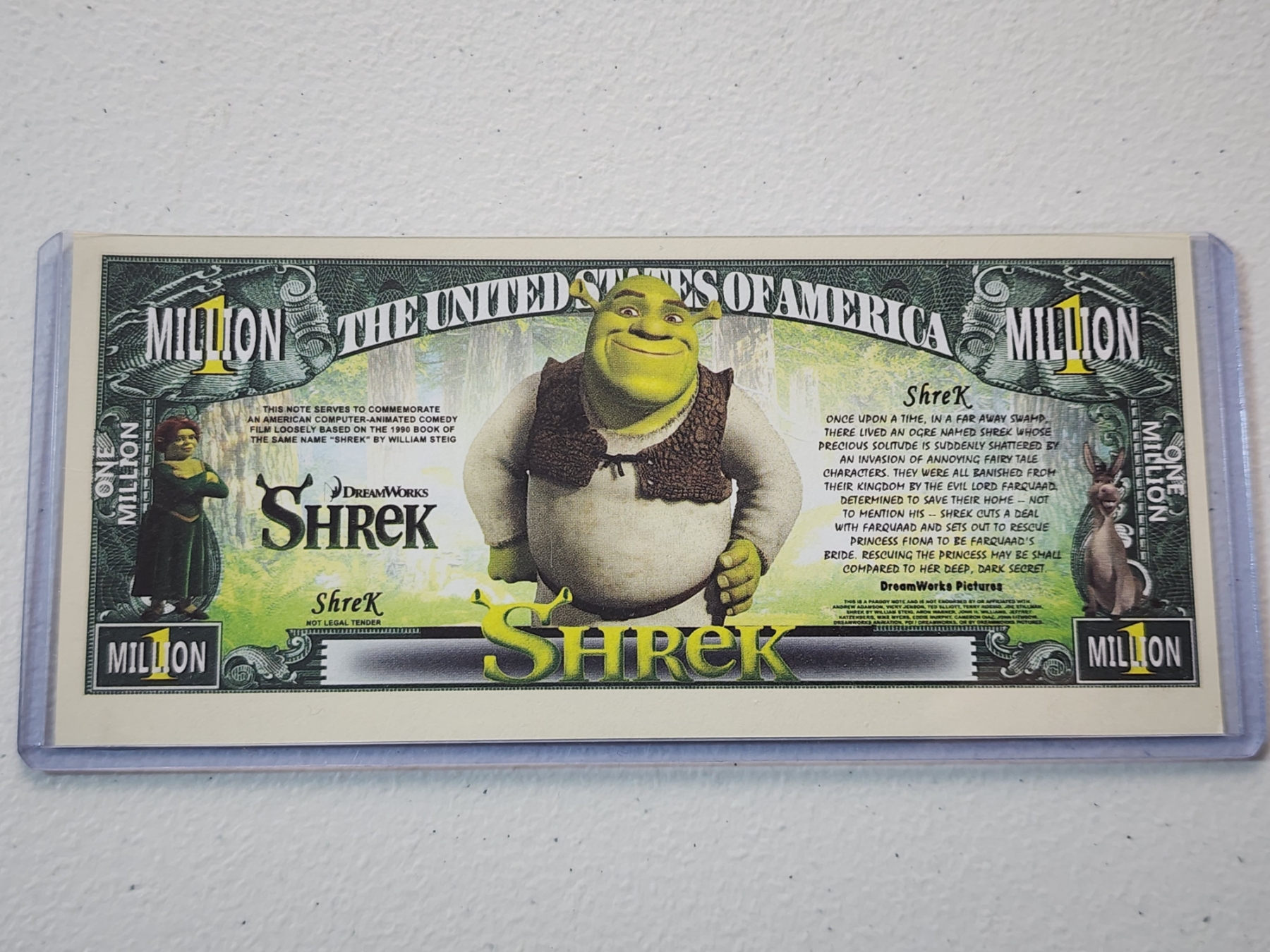 DreamWorks Shrek Commemorative Million Dollar Bill - Mint Condition in Protective Holder