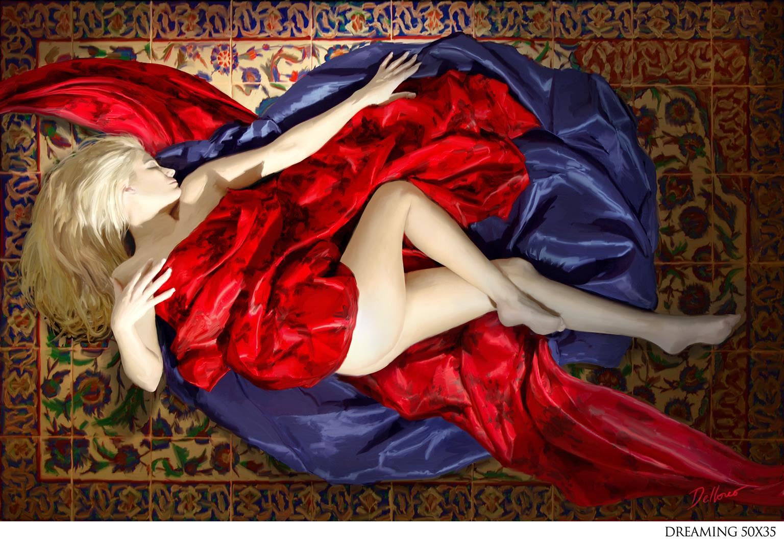 Wouldn't you just love to love her…...or be her? This woman is either in a Dream or is the Dream. DELLORCO let's you choose in this 26"x40" s/n giclee on canvas. With COA.