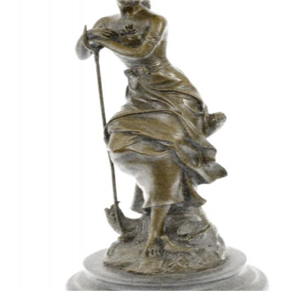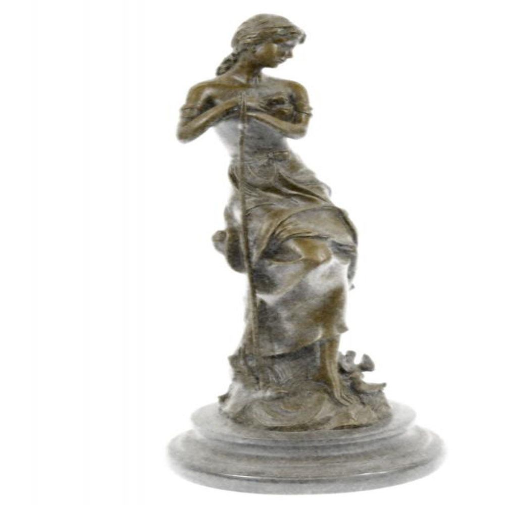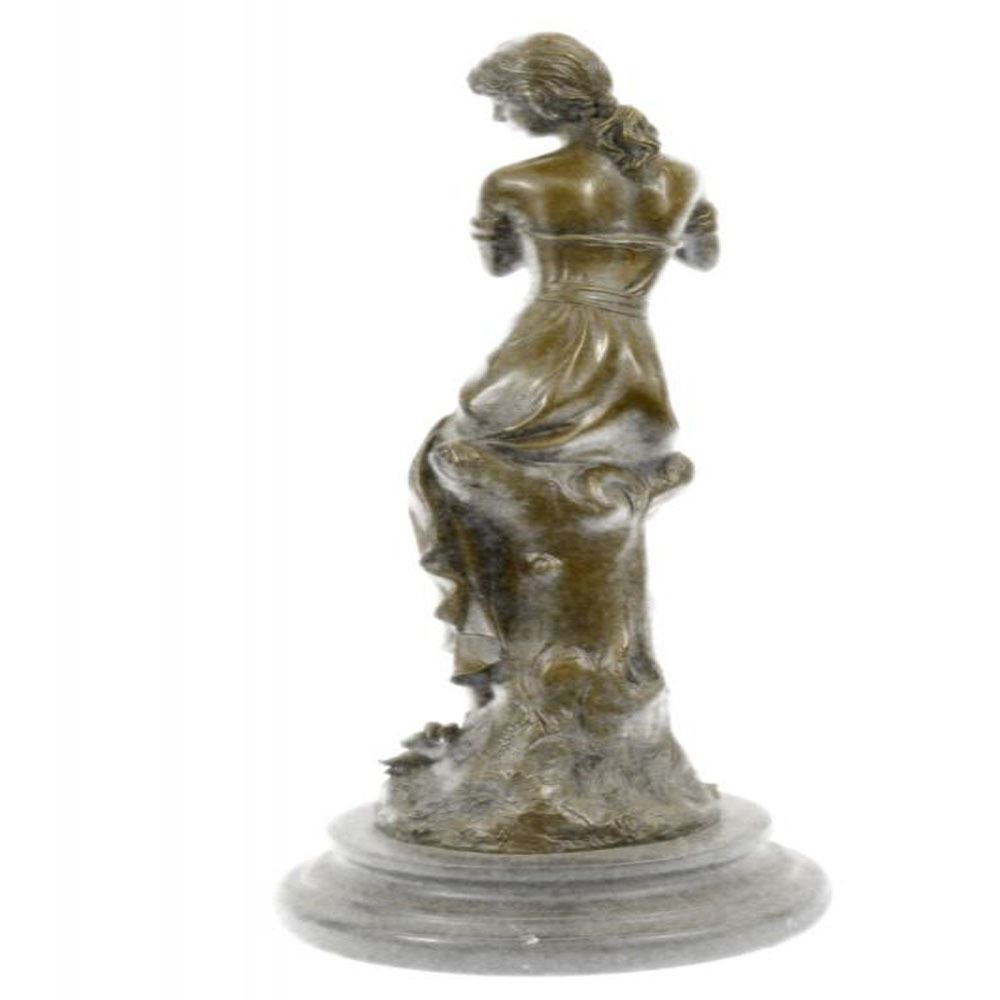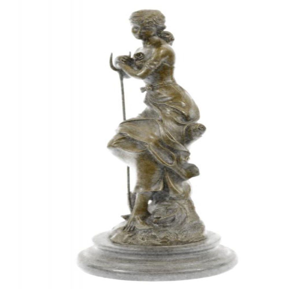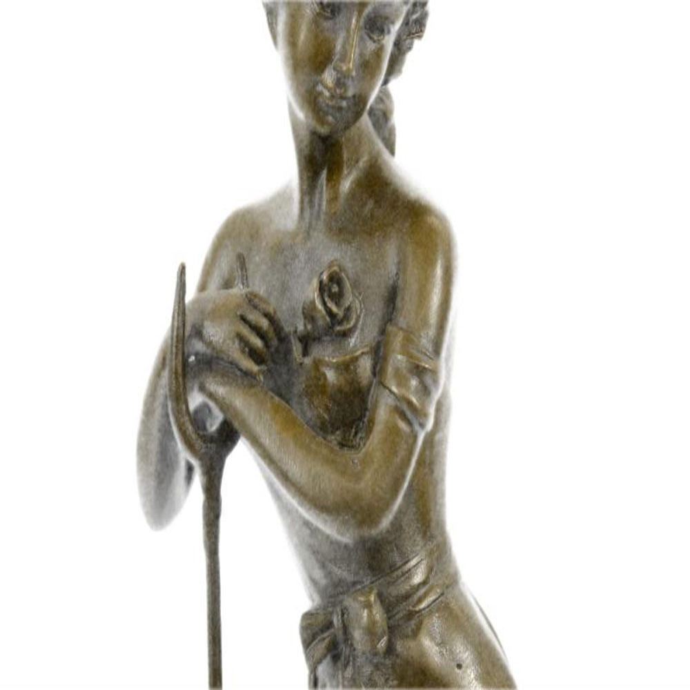 This Bronze Statue is handmade and cast in the traditional Lost Wax Casting Process. This insures a quality Bronze Sculpture that may be passed down from generation to generation. Each small detail is hand finished to make this beautiful Bronze a favorite. Stand up to the elements and will look great wherever you place it with little or no maintenance and cast in the traditional Lost Wax Casting Process. Bronze Dimensions with Marble Base: Height 14 X Width 5 inches. Weight: 9 LBS.