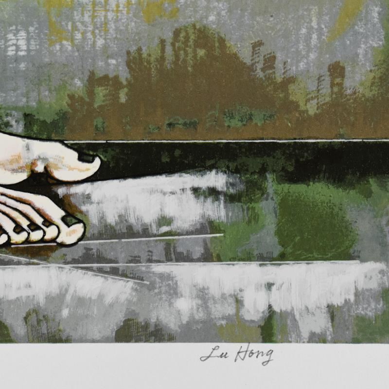 "Dreaming" is a limited edition serigraph on paper by Lu Hong, numbered and hand signed by the artist. Includes Letter of Authenticity. Measures approx. 34" x 36" (with border), 29" x 28" (image).