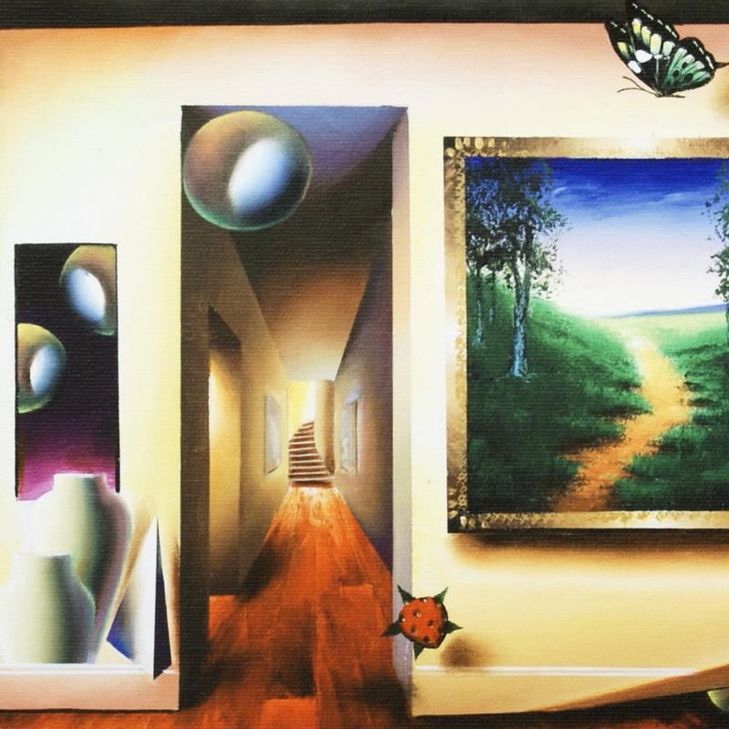 "Dreamlike Corridor" is a limited edition giclee on canvas, numbered and hand signed by Ferjo. Includes Certificate of Authenticity! Measures approx. 12" x 9" (image).