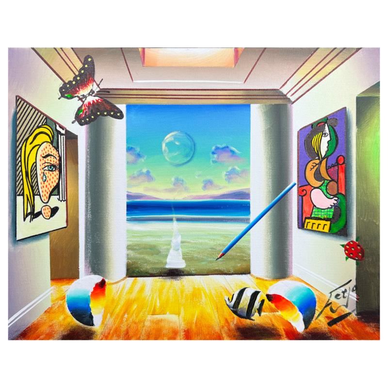 "Dreams Come True in Paradise" is an original painting, oil on stretched canvas, by Ferjo. Hand signed by the artist, this piece comes with a letter of authenticity. Measures approximately 16" x 20" (image).