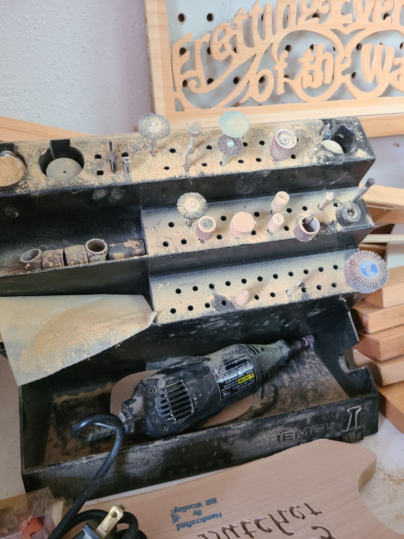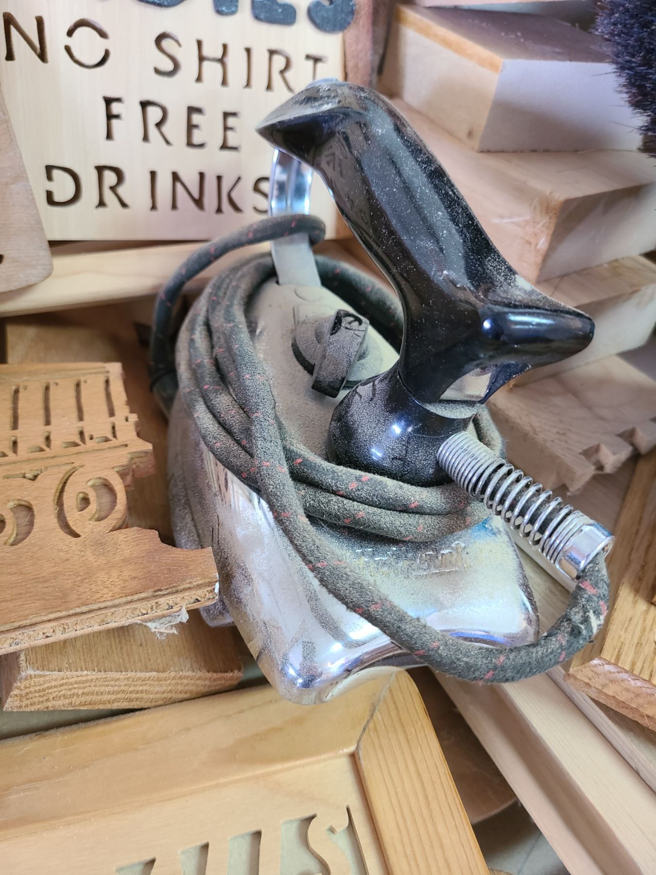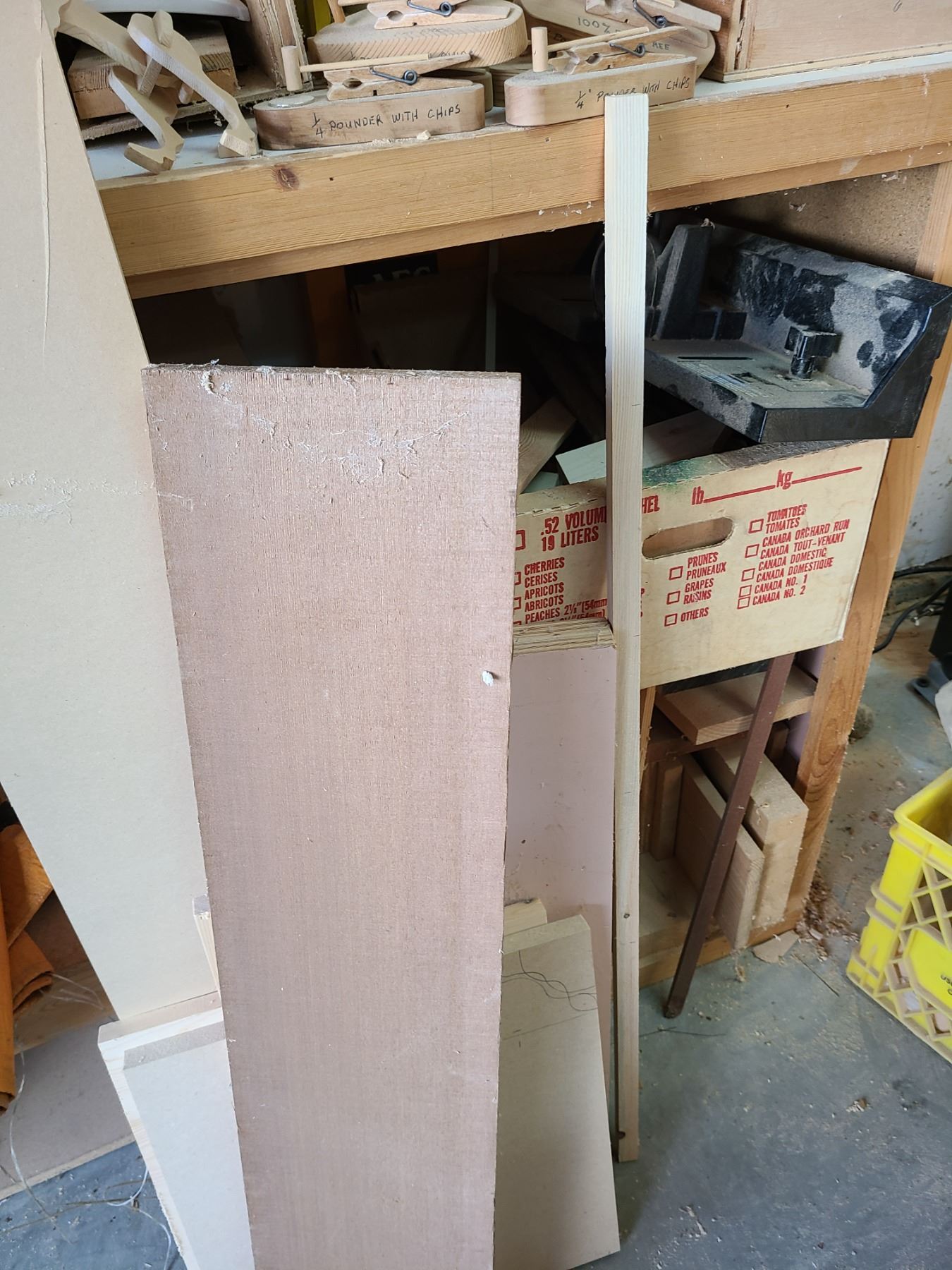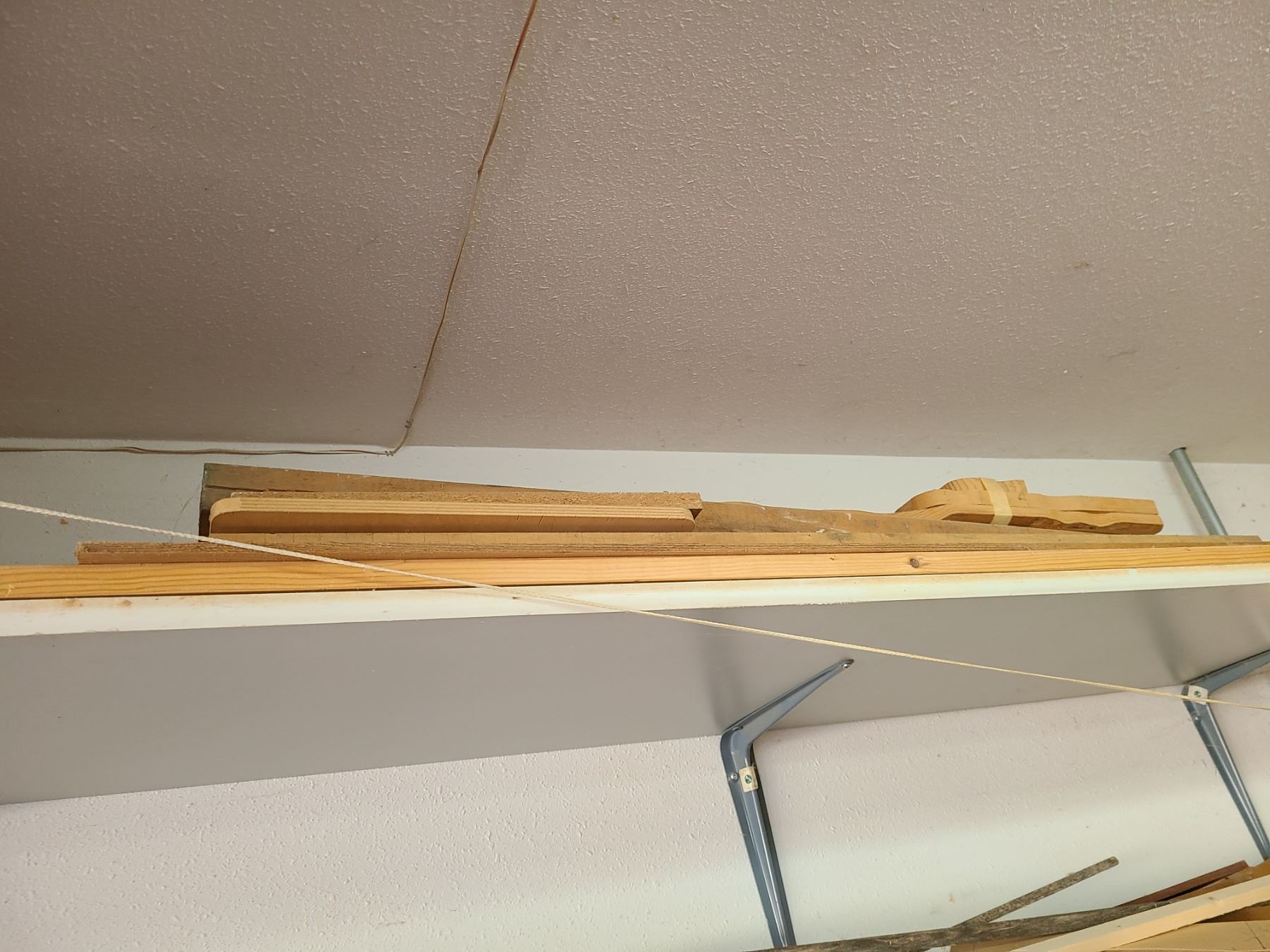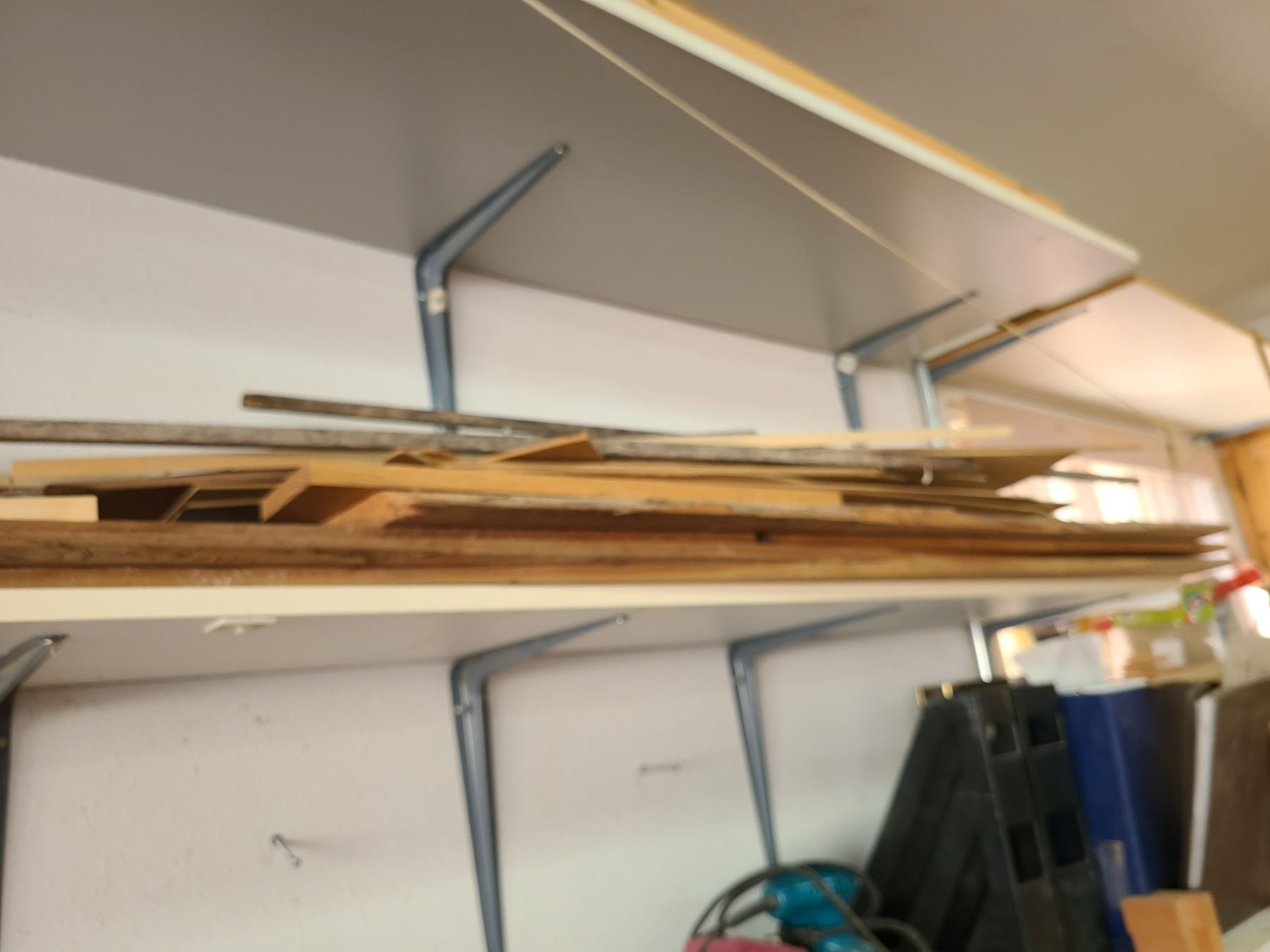 Lot includes assorted wood pieces up to 5 ft. in length, small signs, tarp, Drexel model #395 and pieces, and palm sander. Electronics untested,Pickup 9 am.