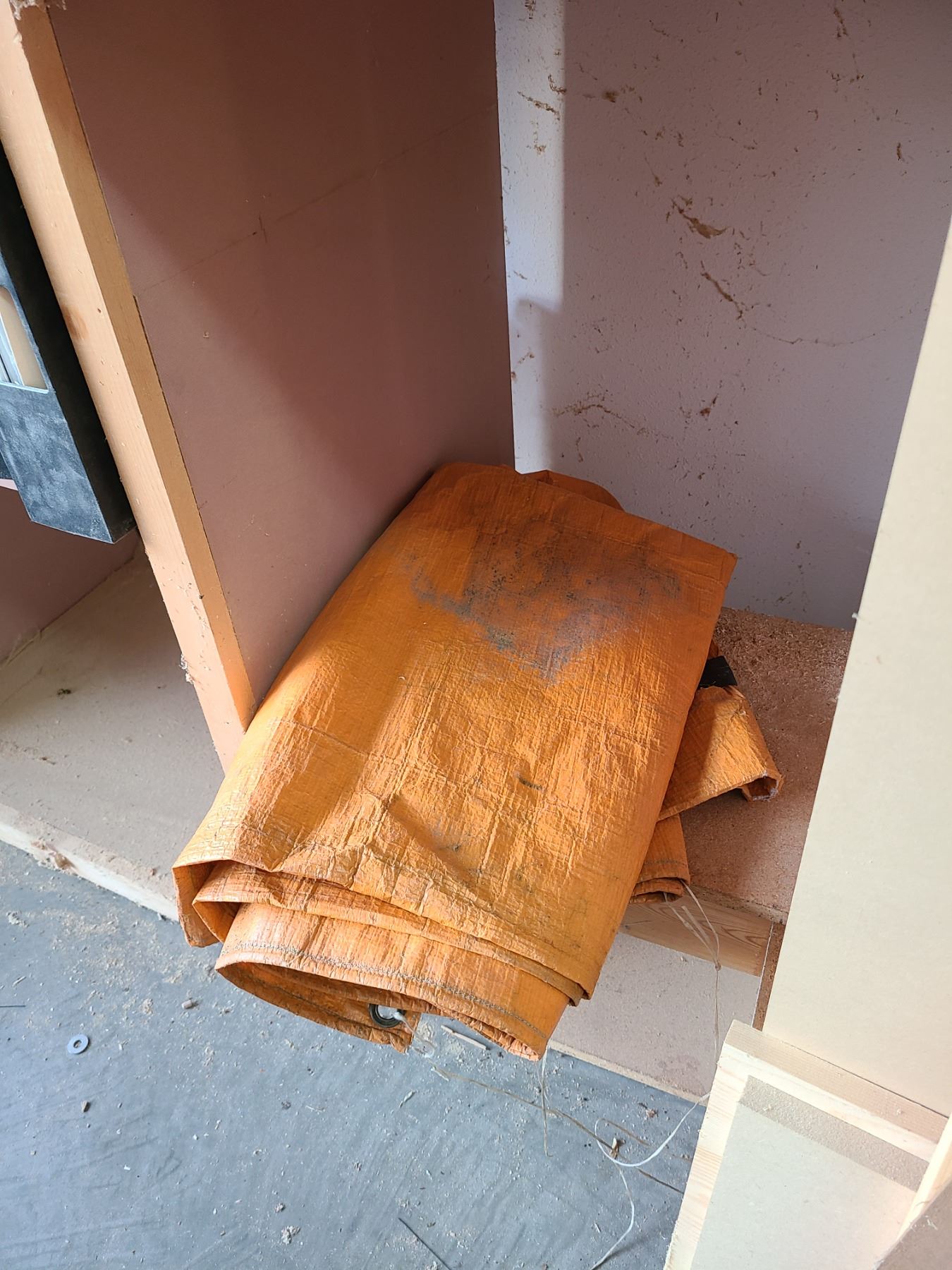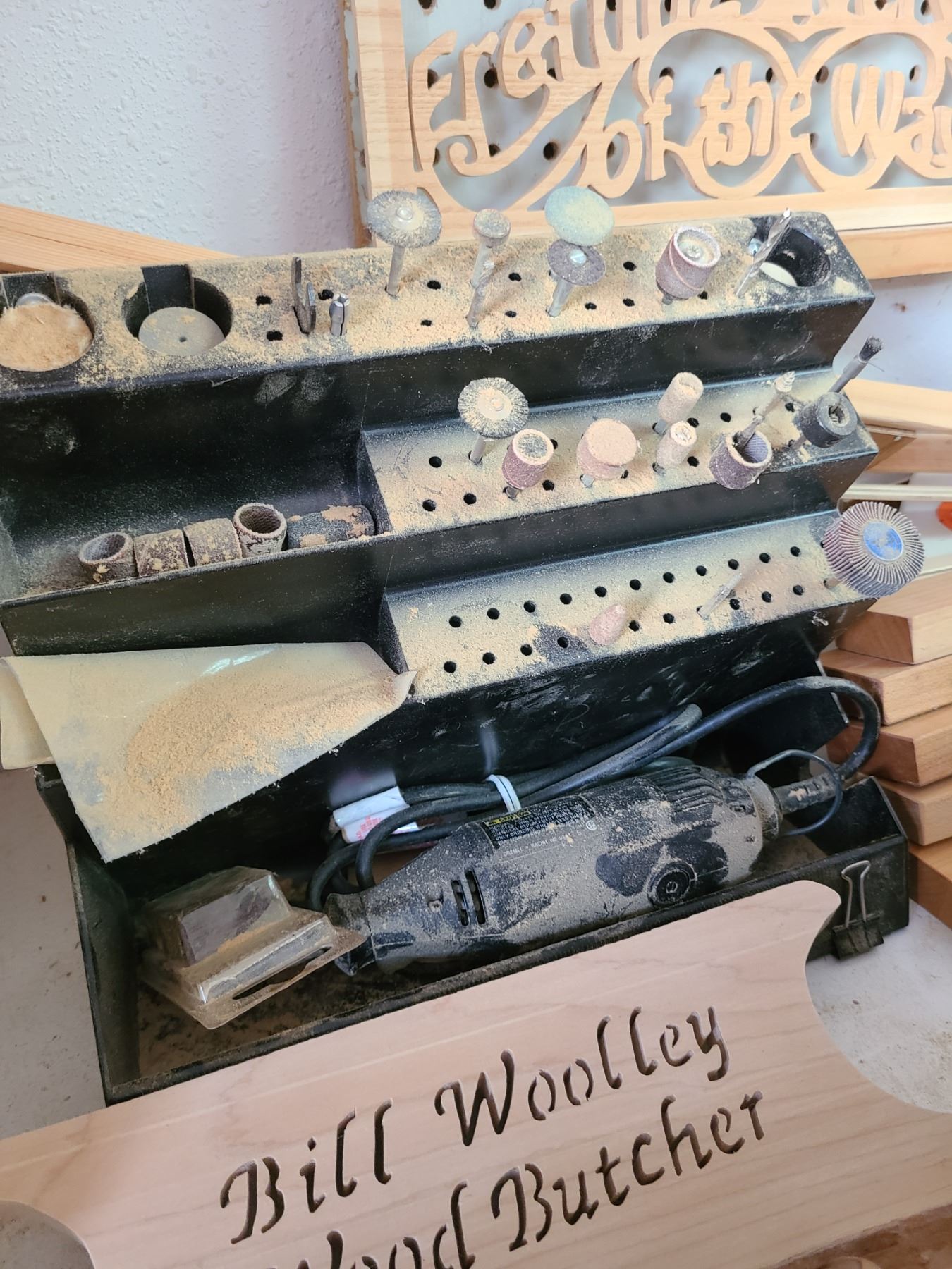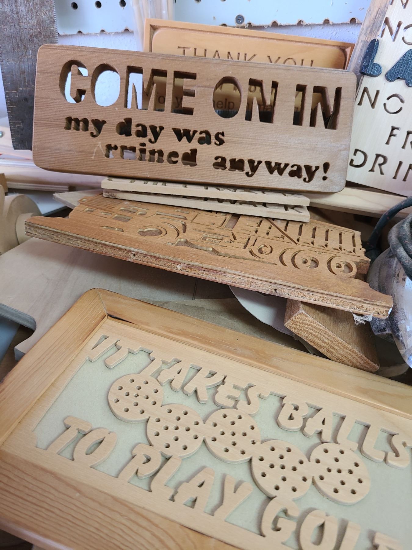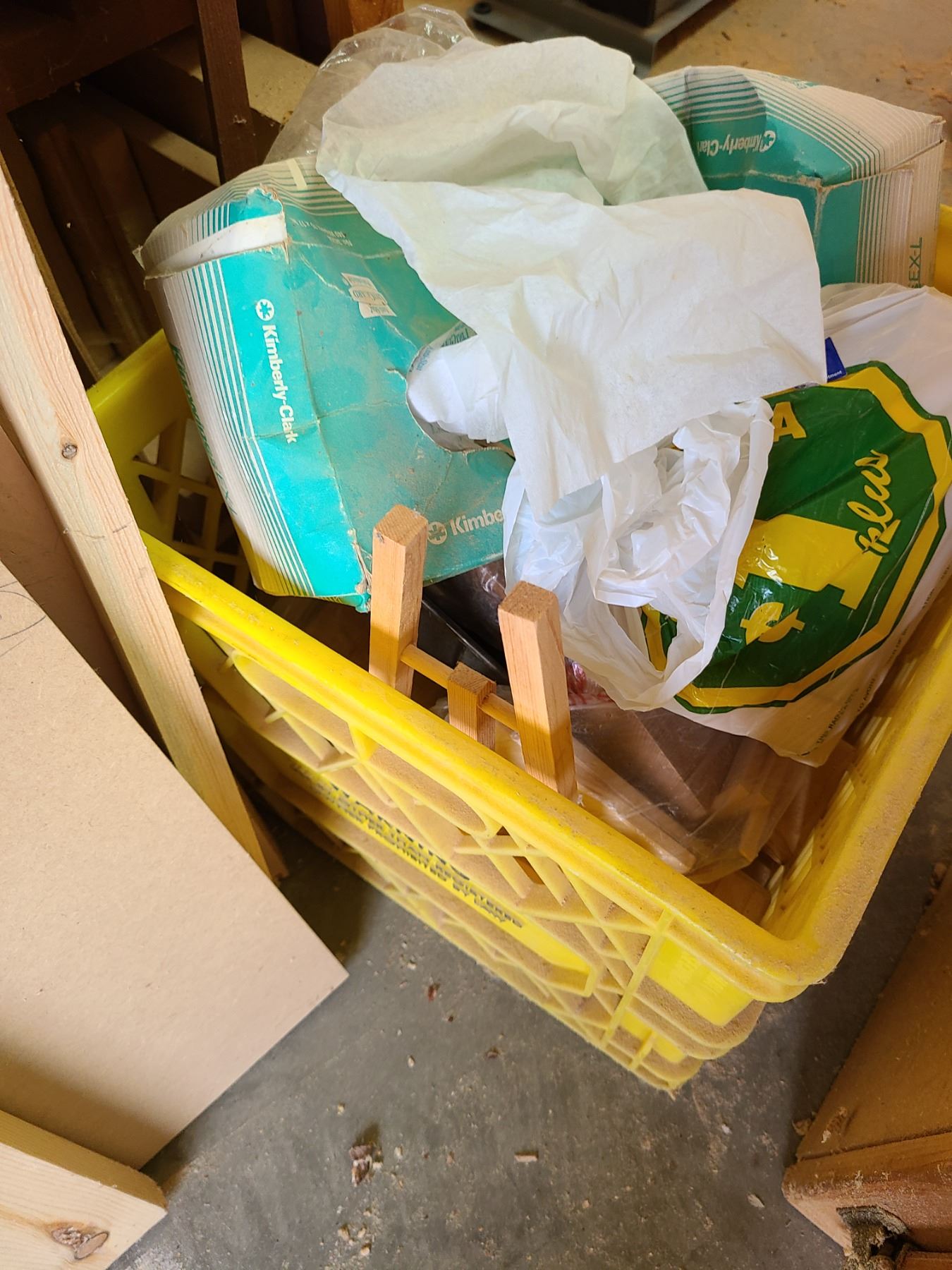 Lot includes assorted wood pieces up to 5 ft. in length, small signs, tarp, Drexel model #395 and pieces, and palm sander. Electronics untested,Pickup 9 am.