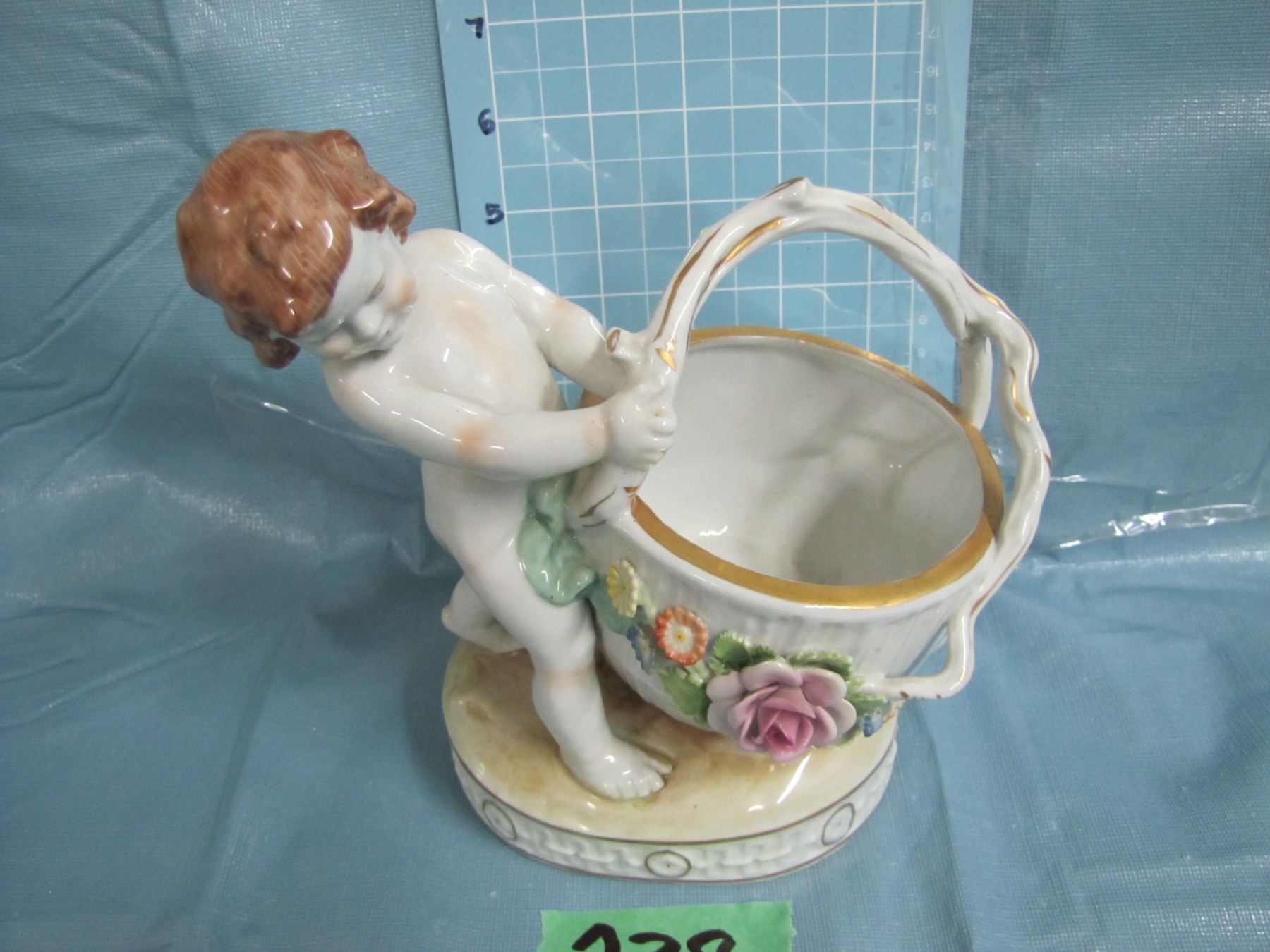 Dresden Hand painted figurine of boy with basket
