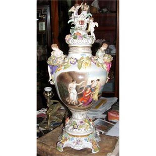 <tr><td>Title:Dresden palace size porcelain urn vase</td></tr>