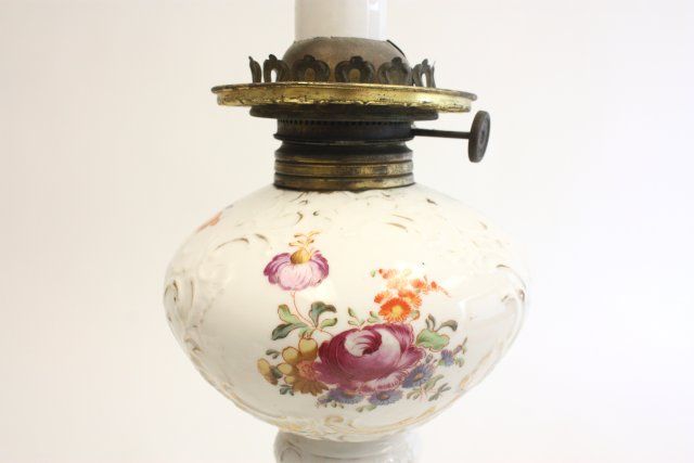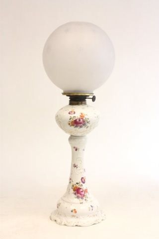 Converted to oil, with etched shade. Approx. 27" H. From a Point Pleasant, NJ estate. Please read our terms of sale.