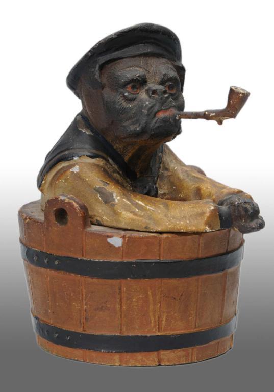 Description Lead metal. Dog dressed in a sailor's outfit, smoking a pipe. Insert present. Condition (Excellent). Size 3 - 1/2" T.