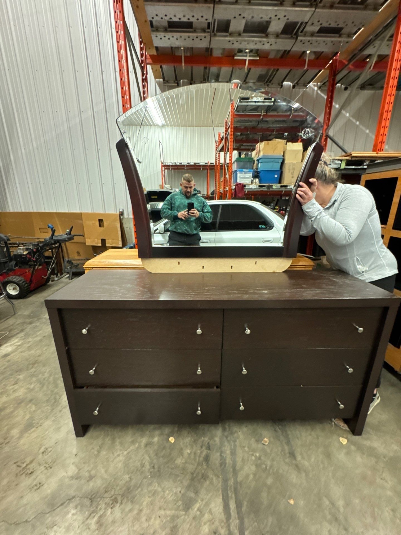 Dresser with mirror. Dresser is 68 and a quarter long by 19 wide by 78 inches high with mirror included