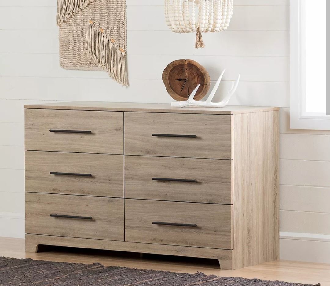 South Shore Primo 51.25 in. x 19 in. x 31.25 in. 6-Drawer Double Dresser in Rustic Oak, New