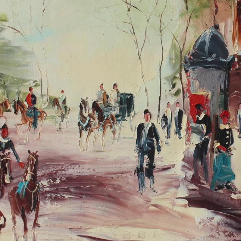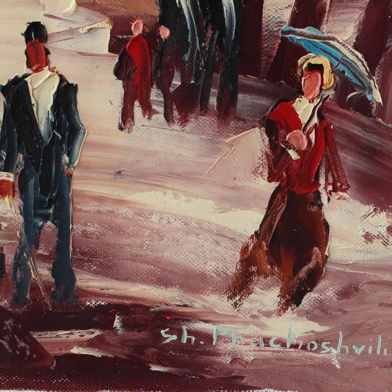 "Dressing Formal" is an original Oil on Canvas by Shalva Phachoshvili. The piece is hand signed and comes with a Certificate of Authenticity. Measures approximately 23" x 13".