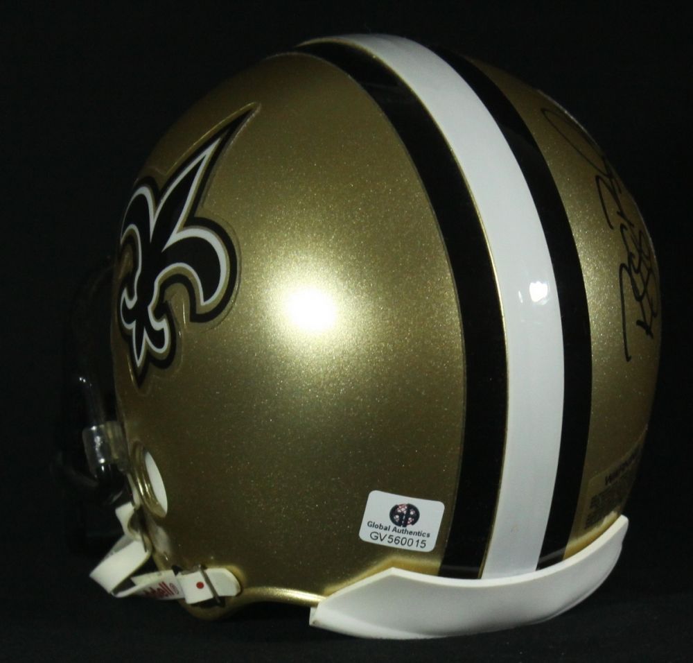 Riddell Saints mini-helmet hand-signed in black felt tip pen. The autograph has been reviewed and authenticated by Global Authentics (GA) and includes their official serially numbered hologram.
