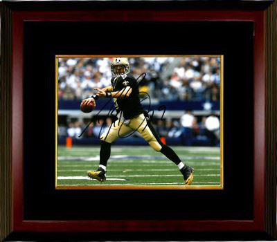 Drew Brees signed with the New Orleans Saints as a free agent, where he met immediate success, earning eight trips to the Pro Bowl and leading the Saints to their first Super Bowl. Since joining the Saints in 2006, he has led all NFL quarterbacks in touchdowns, passing yards and 300-yard games. He was the NFL's Comeback Player of the Year in 2004, the Offensive Player of the Year in 2008 and 2011, and the MVP of Super Bowl XLIV. Sports Illustrated named Brees its 2010 Sportsman of the Year Drew Brees has hand signed this New Orleans Saints 8X10 Photo. Certificate of Authenticity from Athlon Sports. Custom Black Mat and Premium Mahogany Frame as shown.
