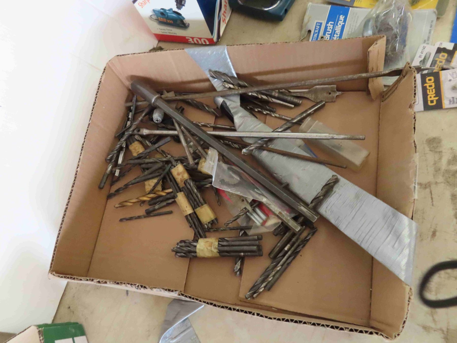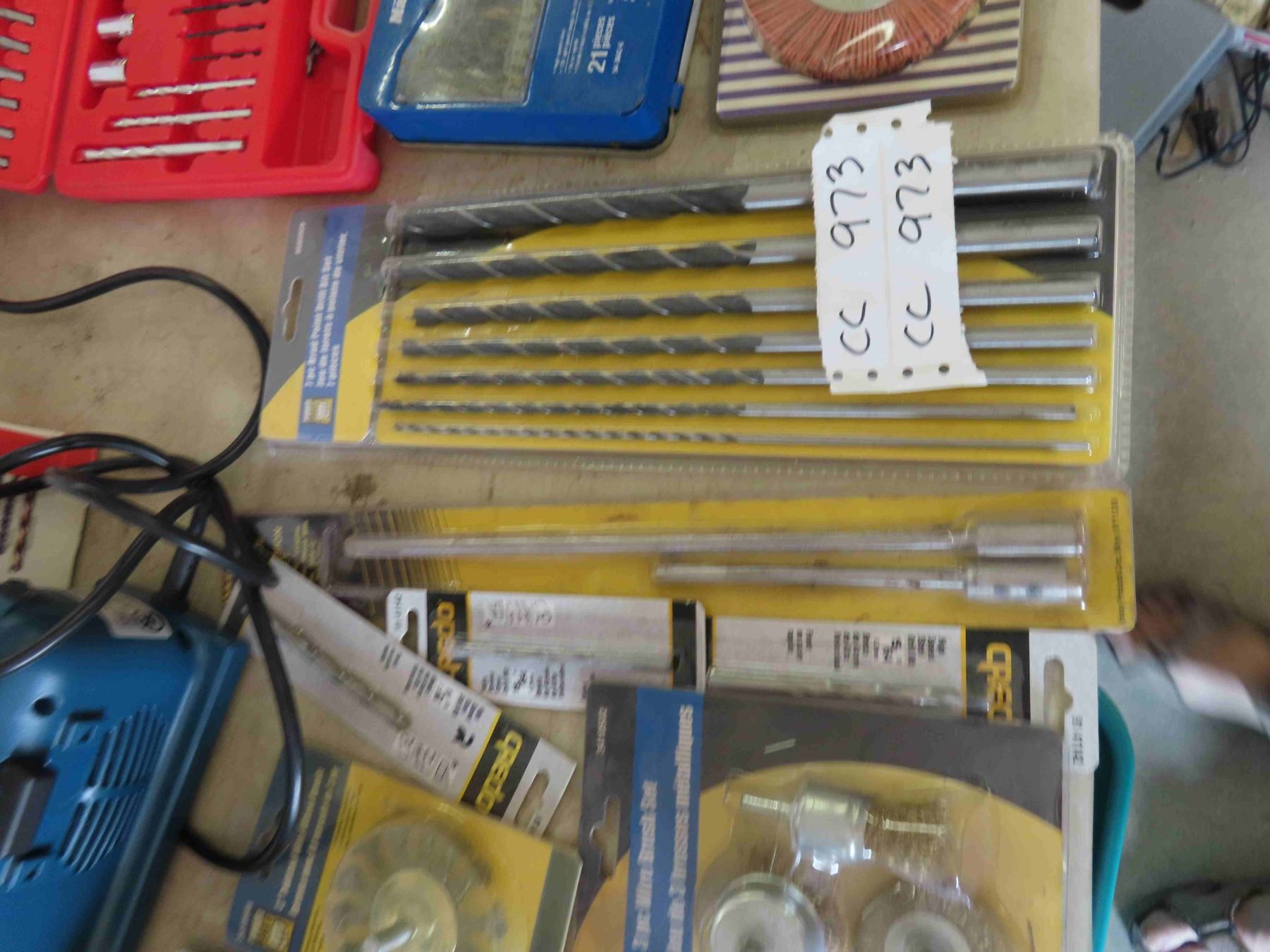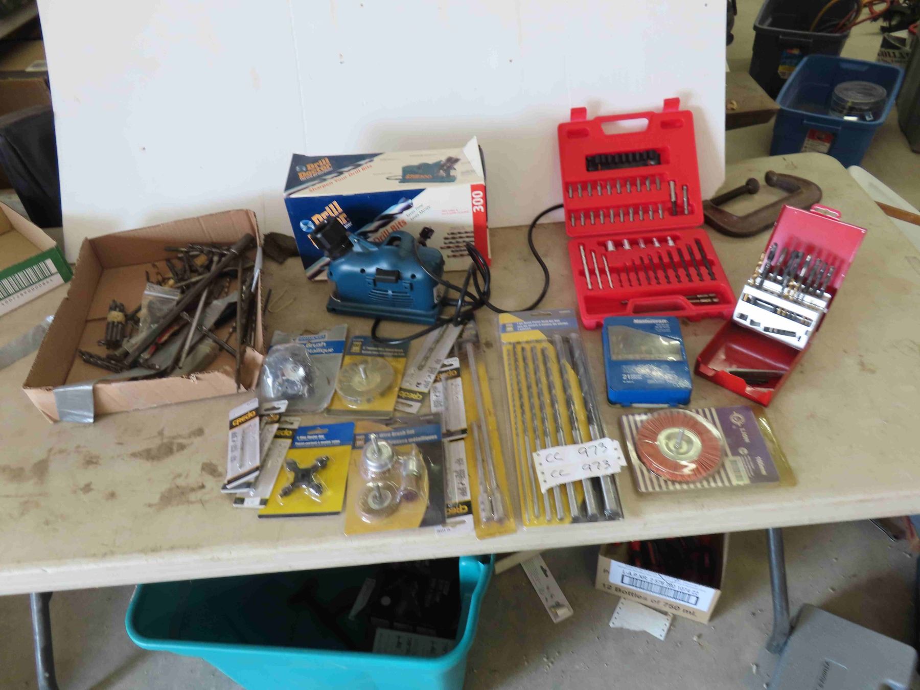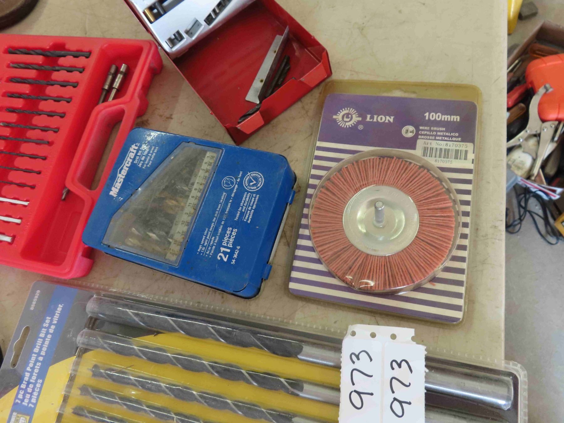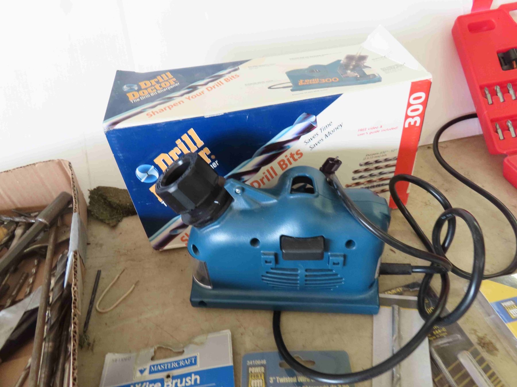 Drill Bit Sharpener, Quantity of Drill Bits (Some New), Wire Wheel, Extensions & More