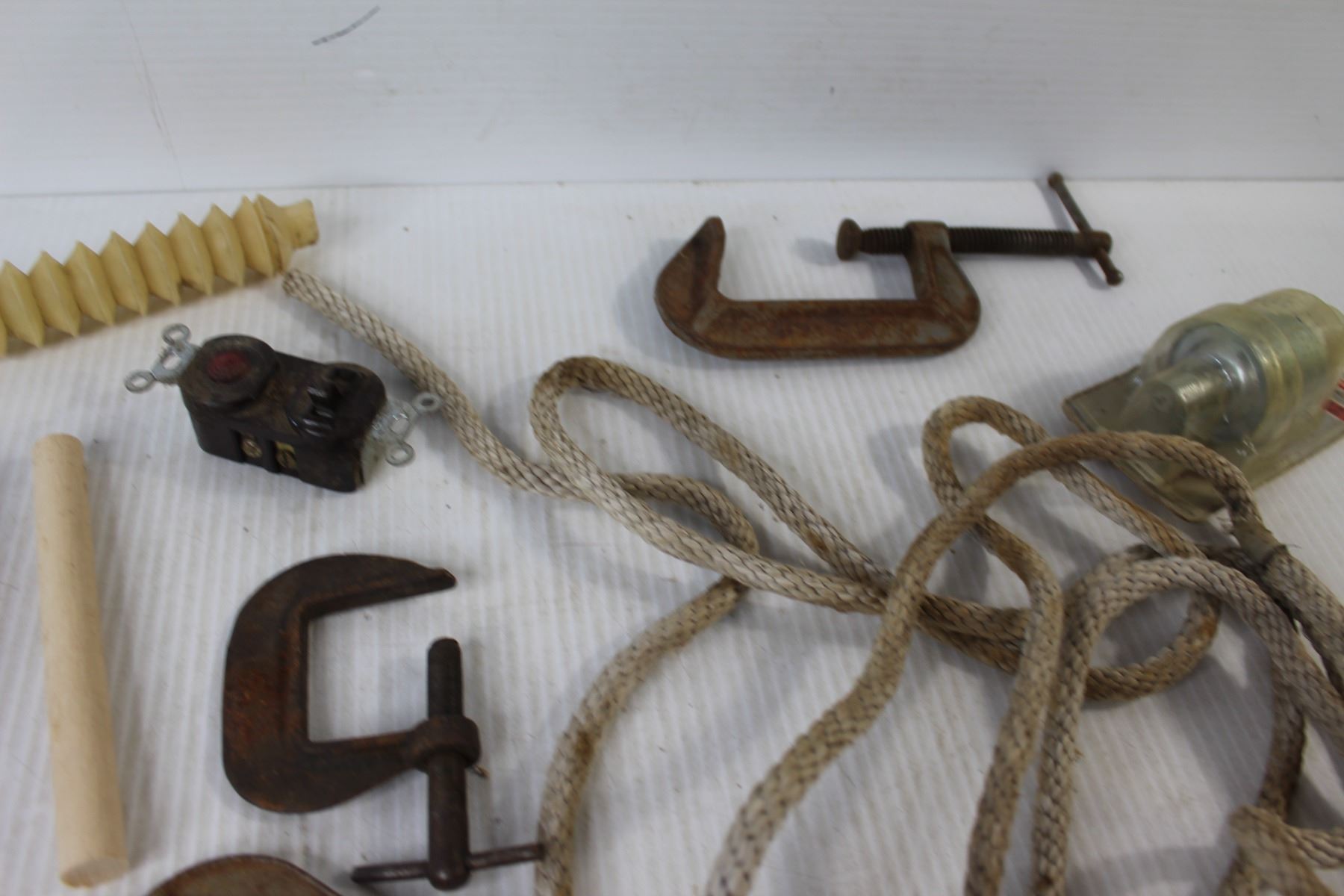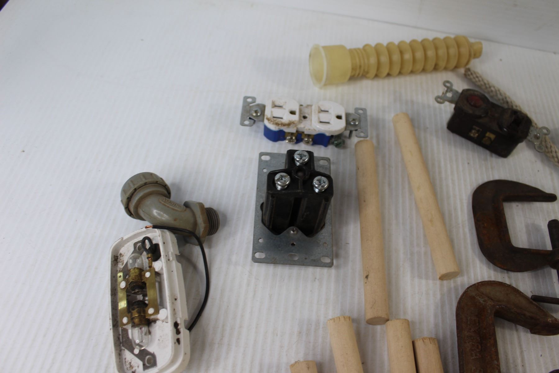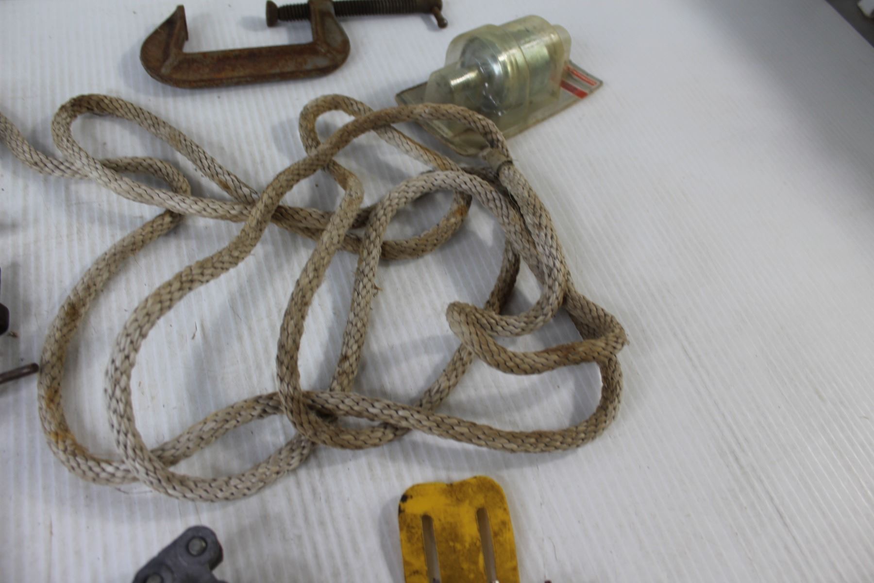 Drill Bits, (3) C Clamps, Rope, Assorted Electrical/Household Items