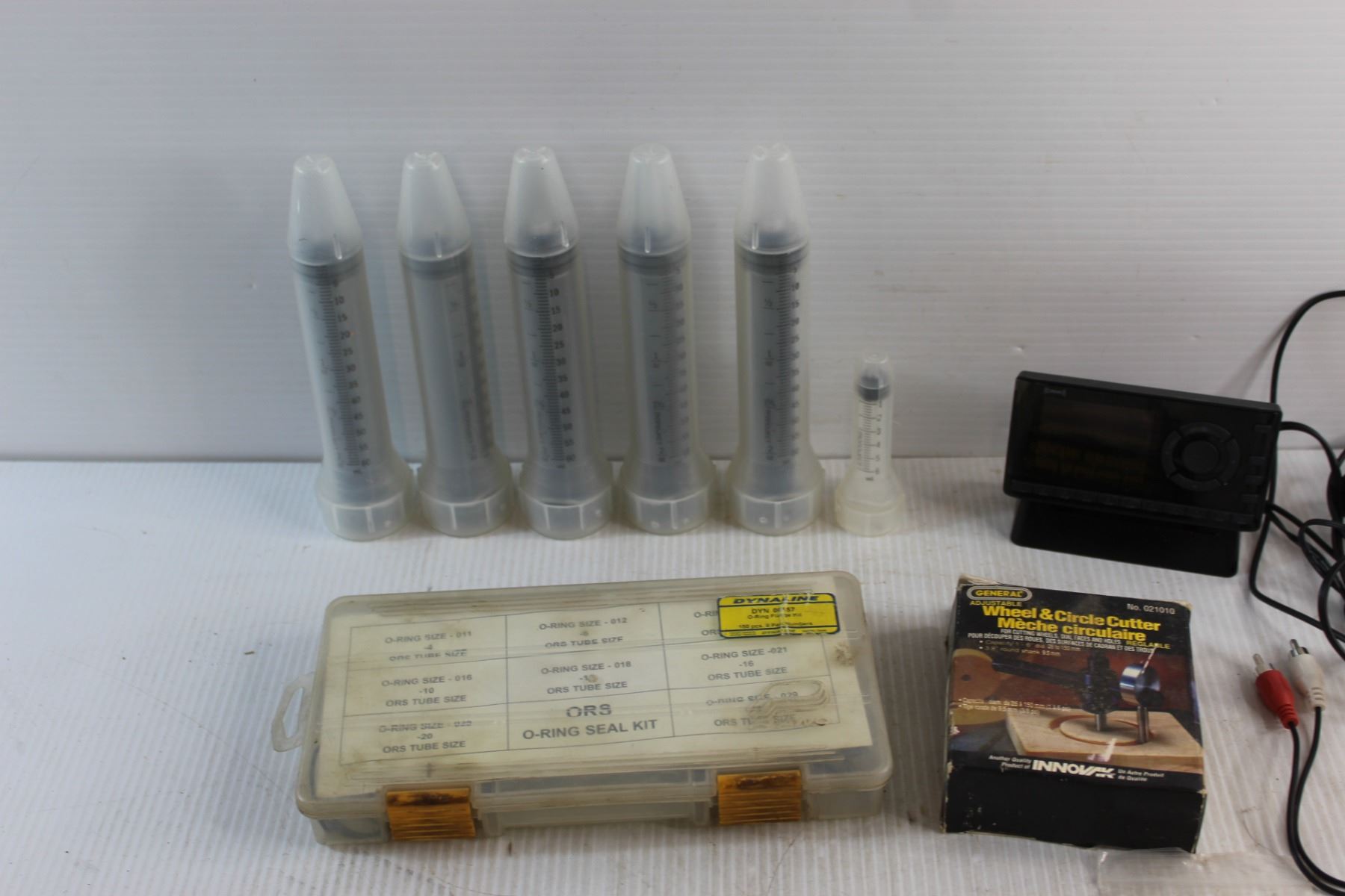 Drill Bits, (6) Plastic Syringes, O-Ring Seal Kit, Wheel & Circle Cutter and Assorted Items