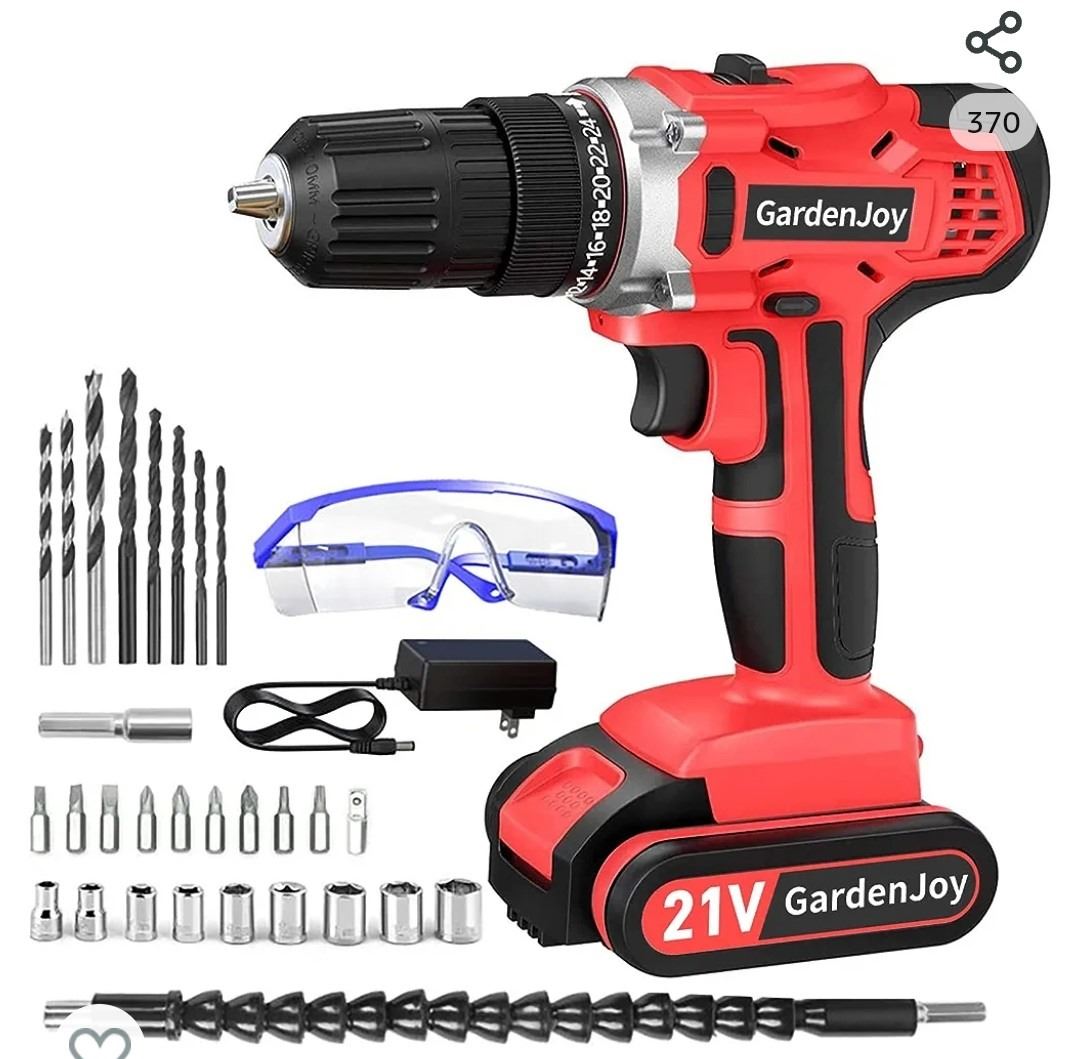 Gardenjoy 21v Cordless Drill Set, Red Color, Open Box, Like New Condition