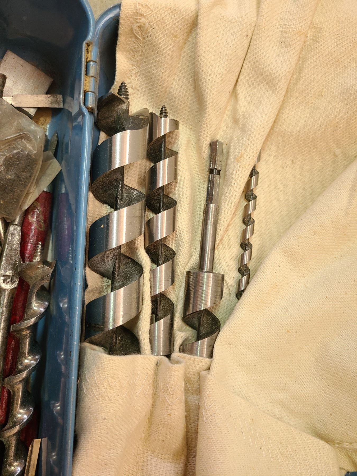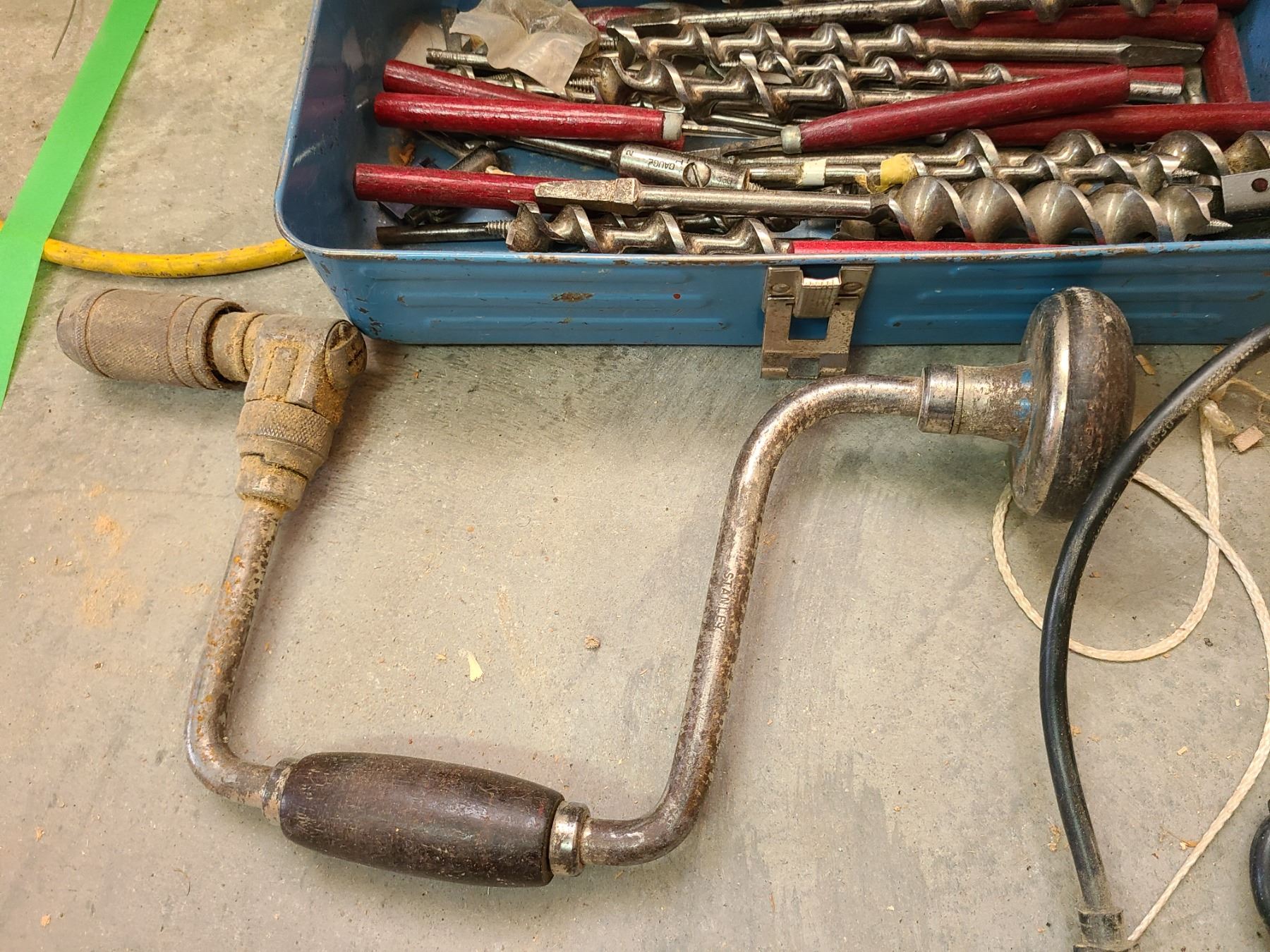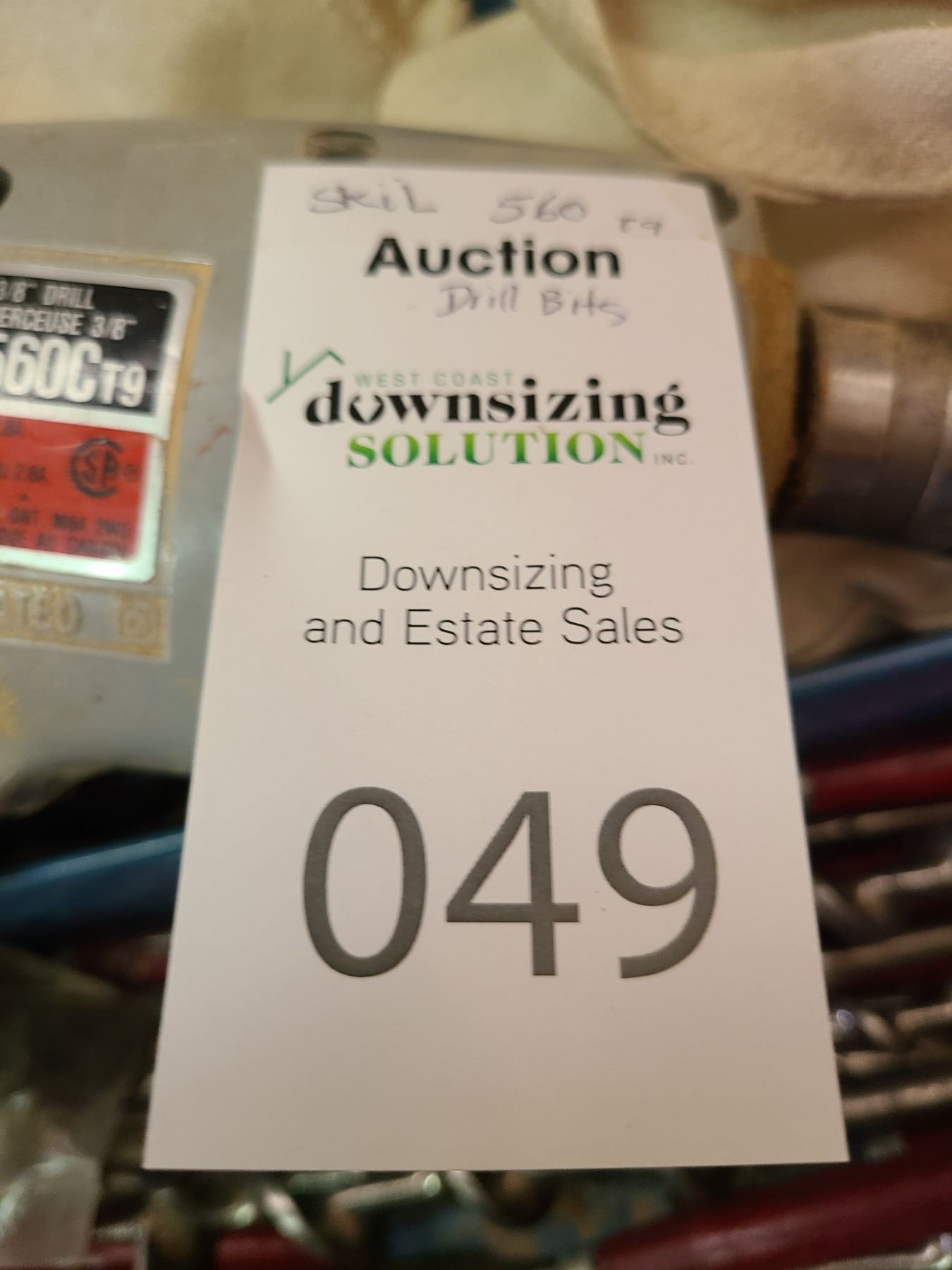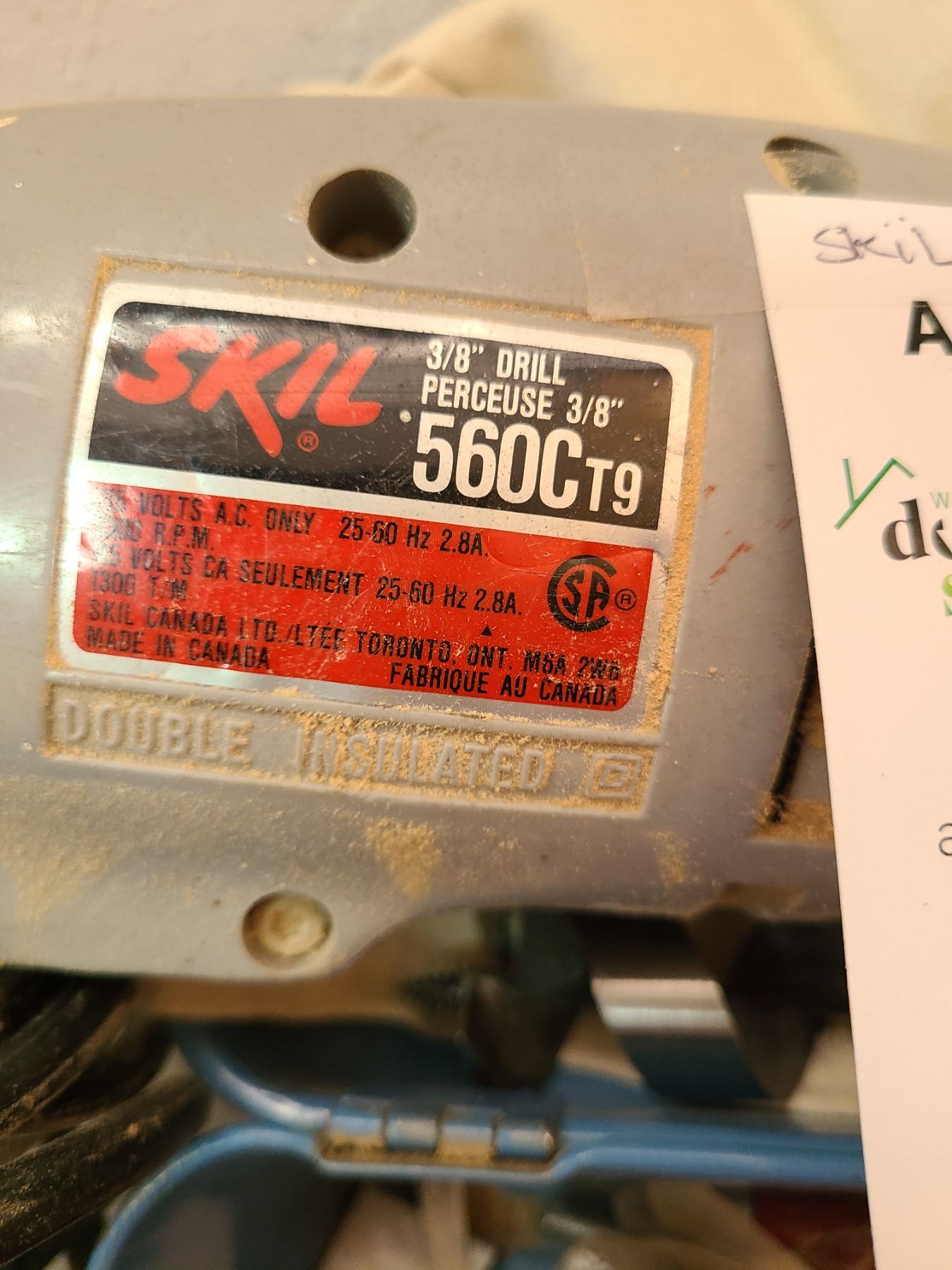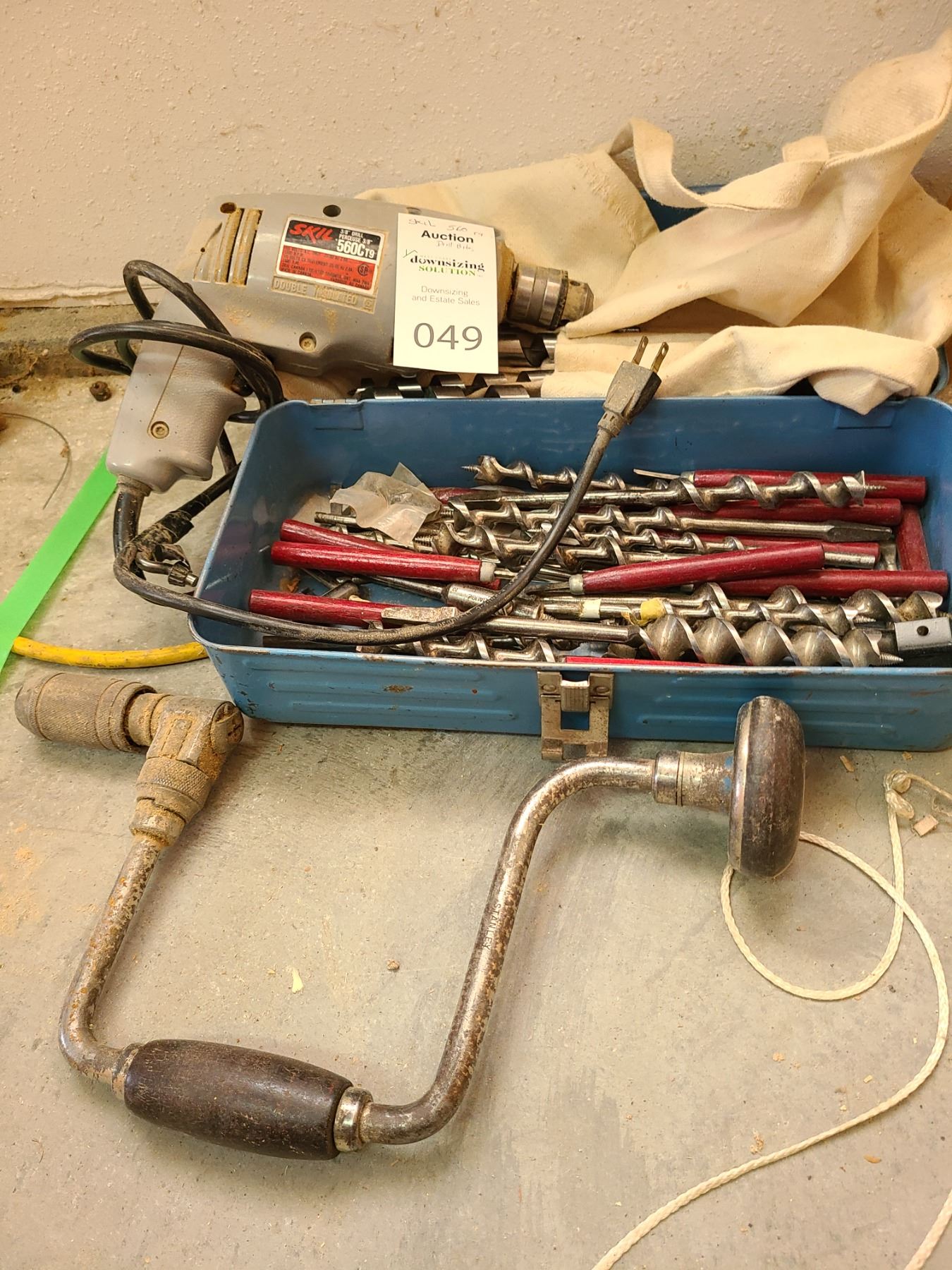 Lot includes drill bits, hand drill, and Skil 560C. Untested Pickup 9 am.