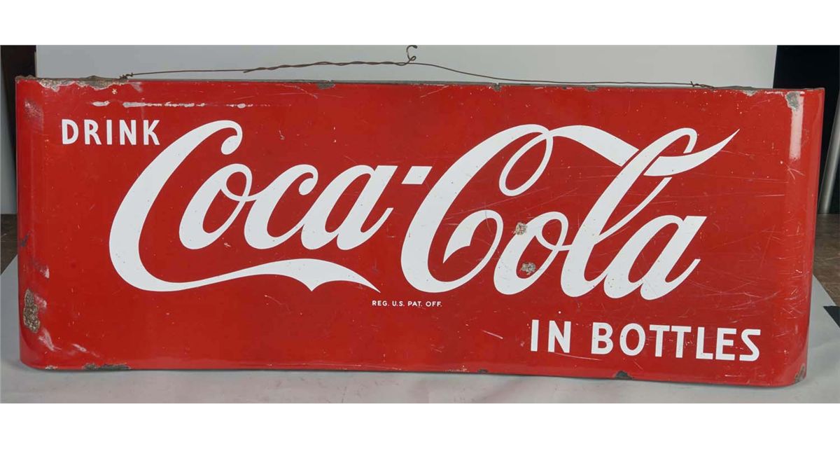 Reads "Drink Coca-Cola In Bottles" circa 1950s. Condition (Good). Size 16" x 44"