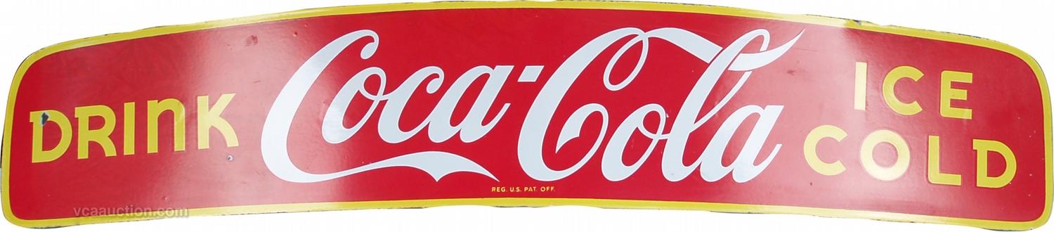 "Drink Coca Cola Ice Cold" Porcelain Truck Side Sign c1950's, in great condition - 58" x 17"