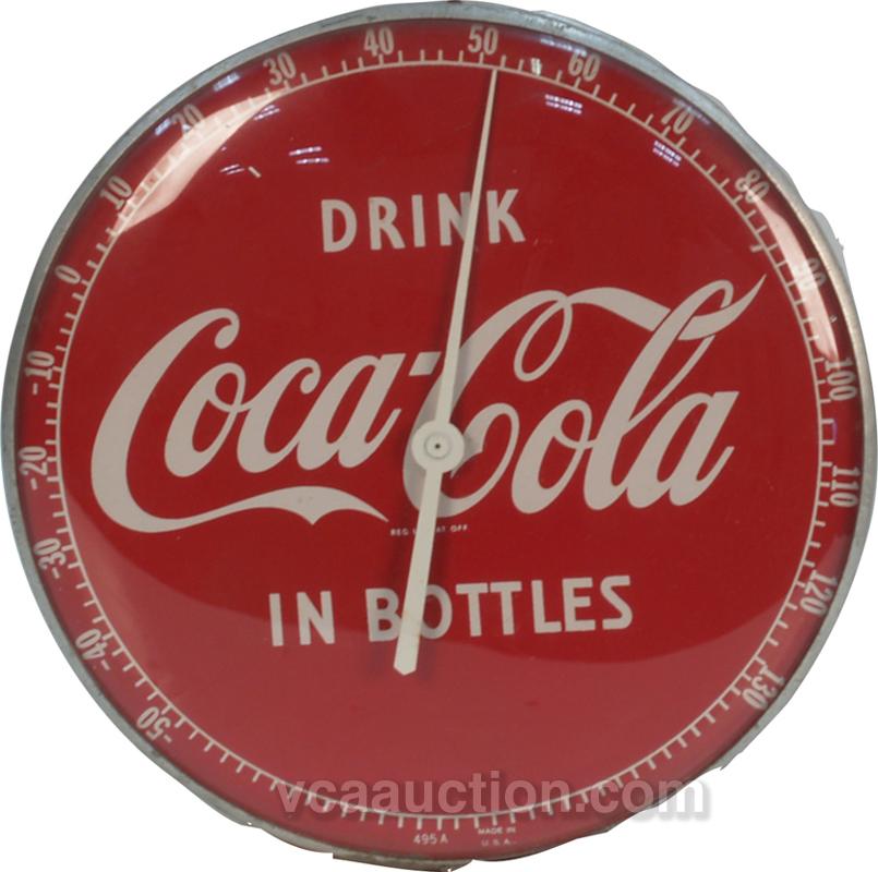 "Drink Coca Cola In Bottles" Aluminum & Glass Thermometer - 12" diam