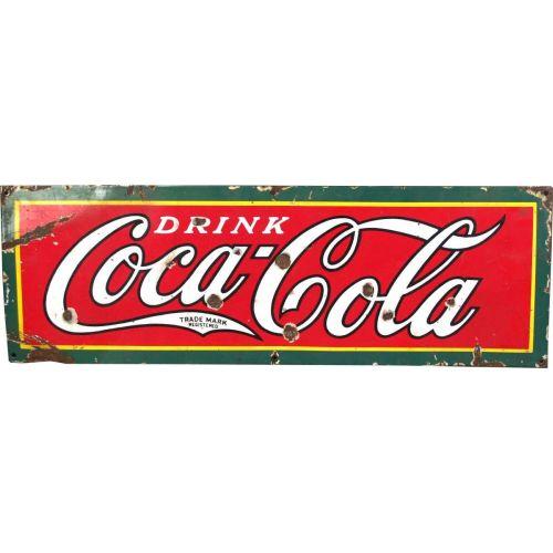 Drink Coca-Cola Porcelain Sign 10 x 30 Original Condition