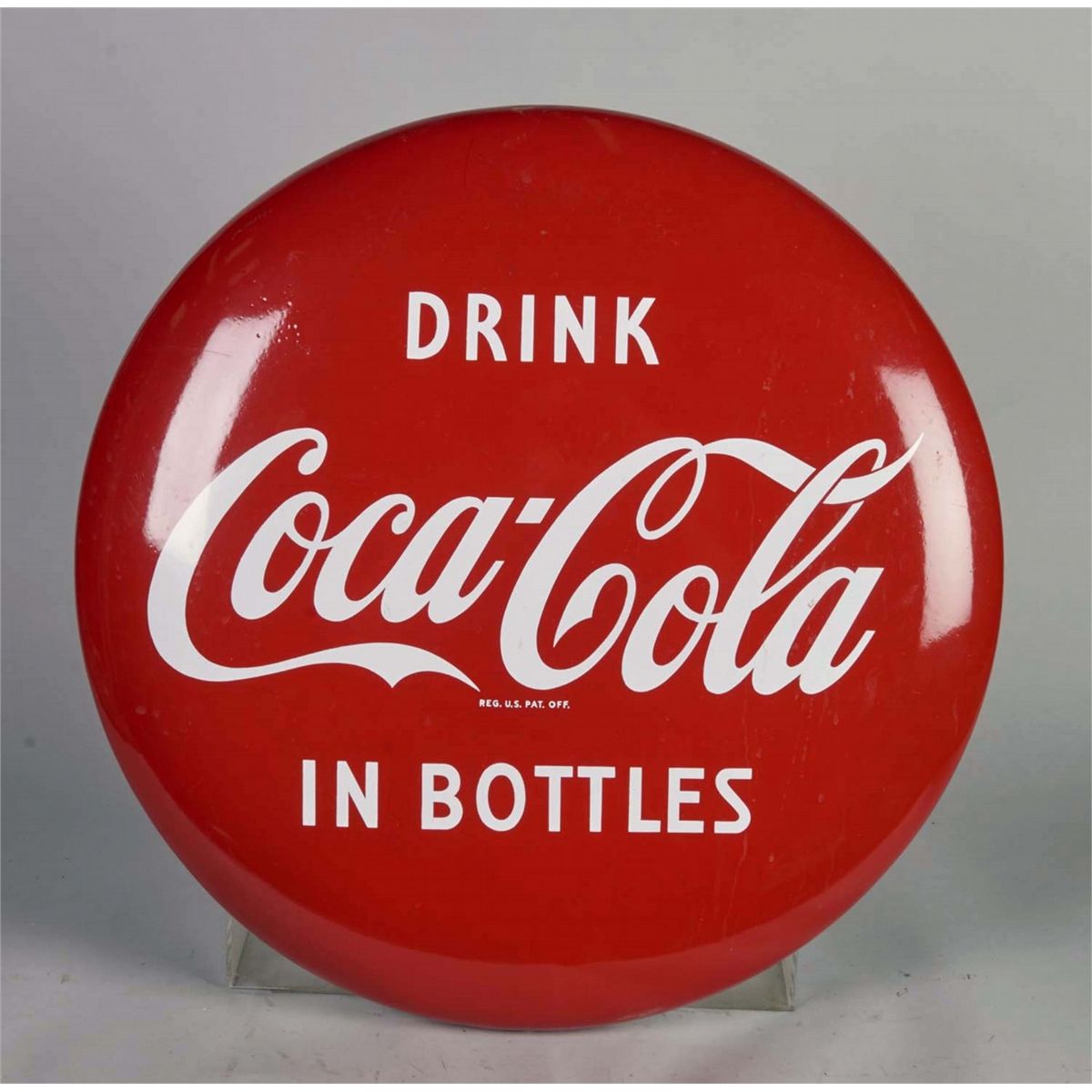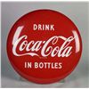 Reads "Drink Coca-Cola In Bottles" circa 1950s with 2 lower indents to go around mounting poles. Condition (Near mint). Size 24"d.