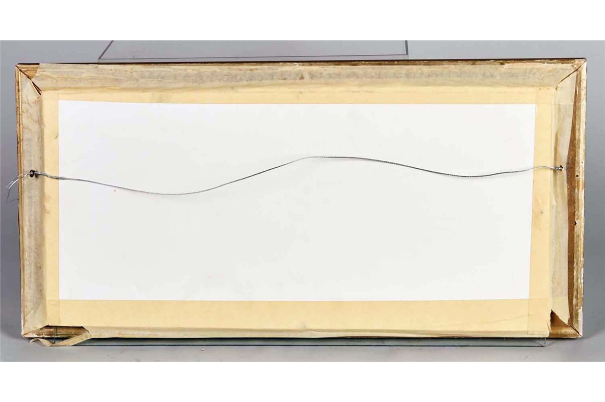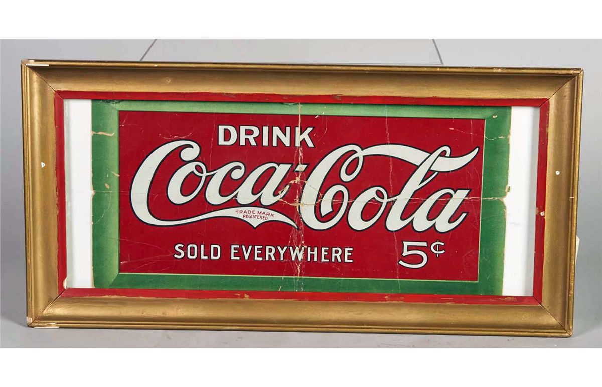 In frame circa 1920s. Some damage. Sign measures 10" x 21". Condition (Fair). Size 14" x 27"