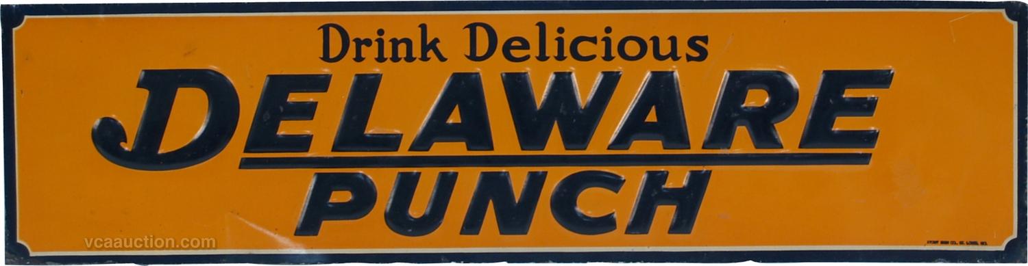 Drink Delicious Delaware Punch Embossed Tin Sign - 23" x 6"