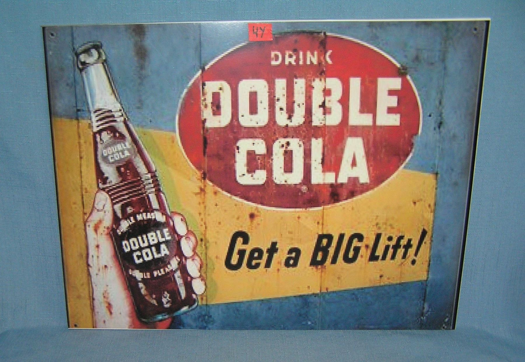 Drink Double Cola retro style advertising sign printed on PVC hard board these signs are auctioned for there decorative and display purposes 12 inches by 16 inches est. value $50.00-60.00