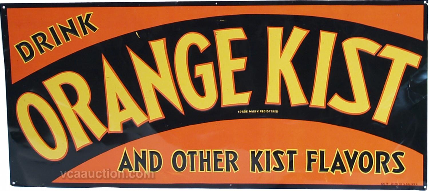 Drink Orange Kist Embossed Tin Sign "And Other Kist Flavors" - 29" x 13"