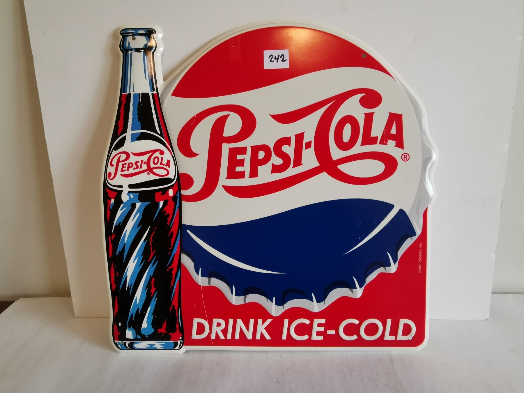 Drink ice-cold pepsi-cola sign 13.5"x13.5