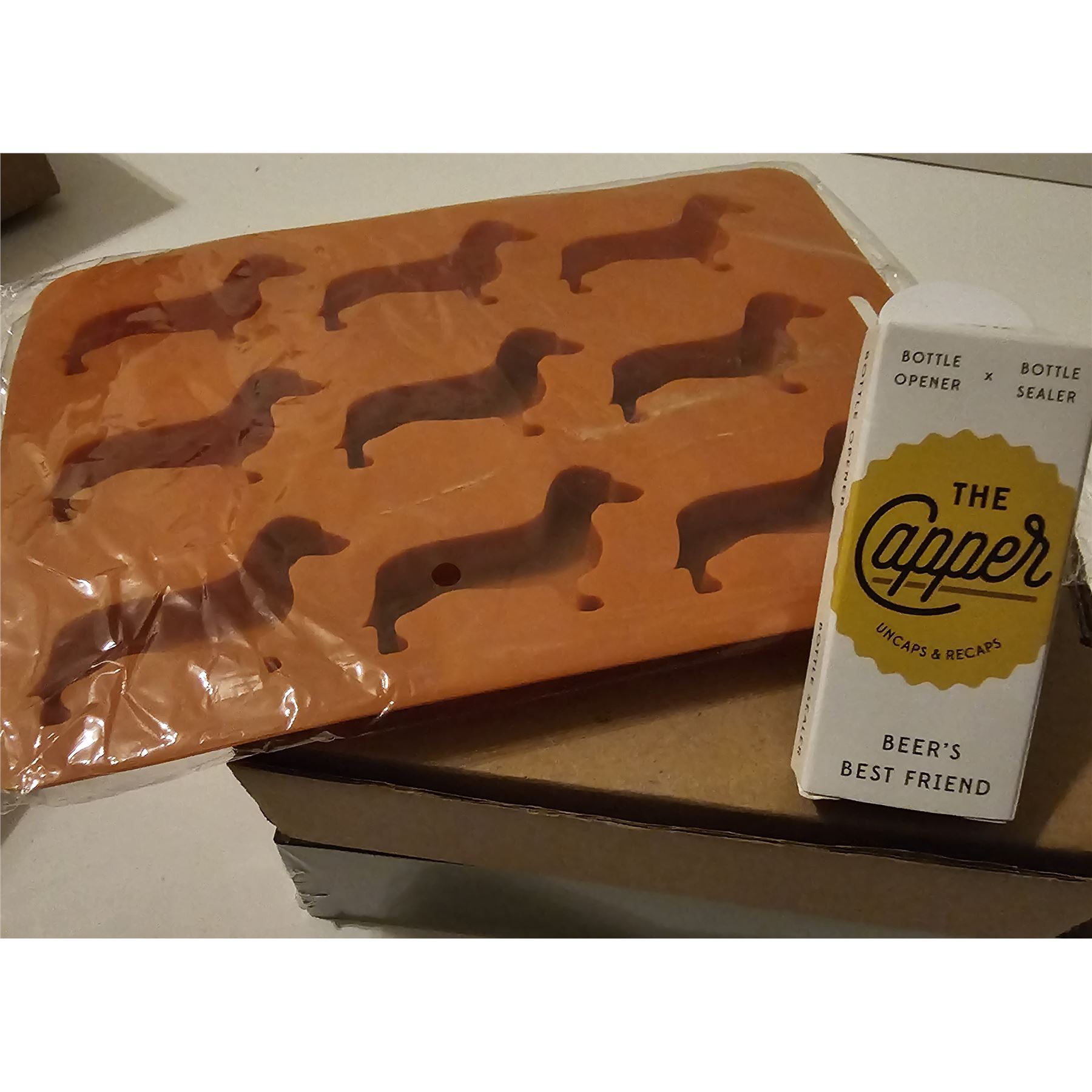 Novelty silicone ice tray for dog-shaped ice cubes, with a multifunctional bottle opener, new.
