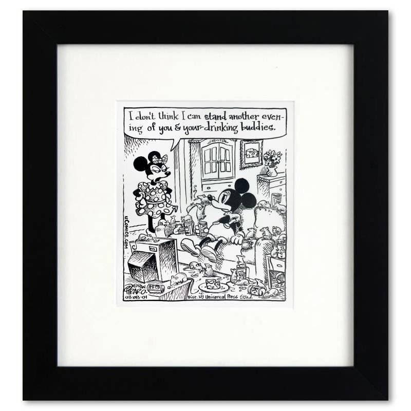 Enter a surreal and satirical world of twisted imagination and award winning creativity. "Drinking Buddies" is an original pen & ink drawing on paper by Dan Piraro, creator of the critically acclaimed and award winning comic strip, Bizarro. This piece is hand signed, comes custom framed and includes a letter of authenticity. Measures approximately 12" x 11" (frame), 7" x 6" (image).This item requires special handling and may have a longer than usual turnaround.