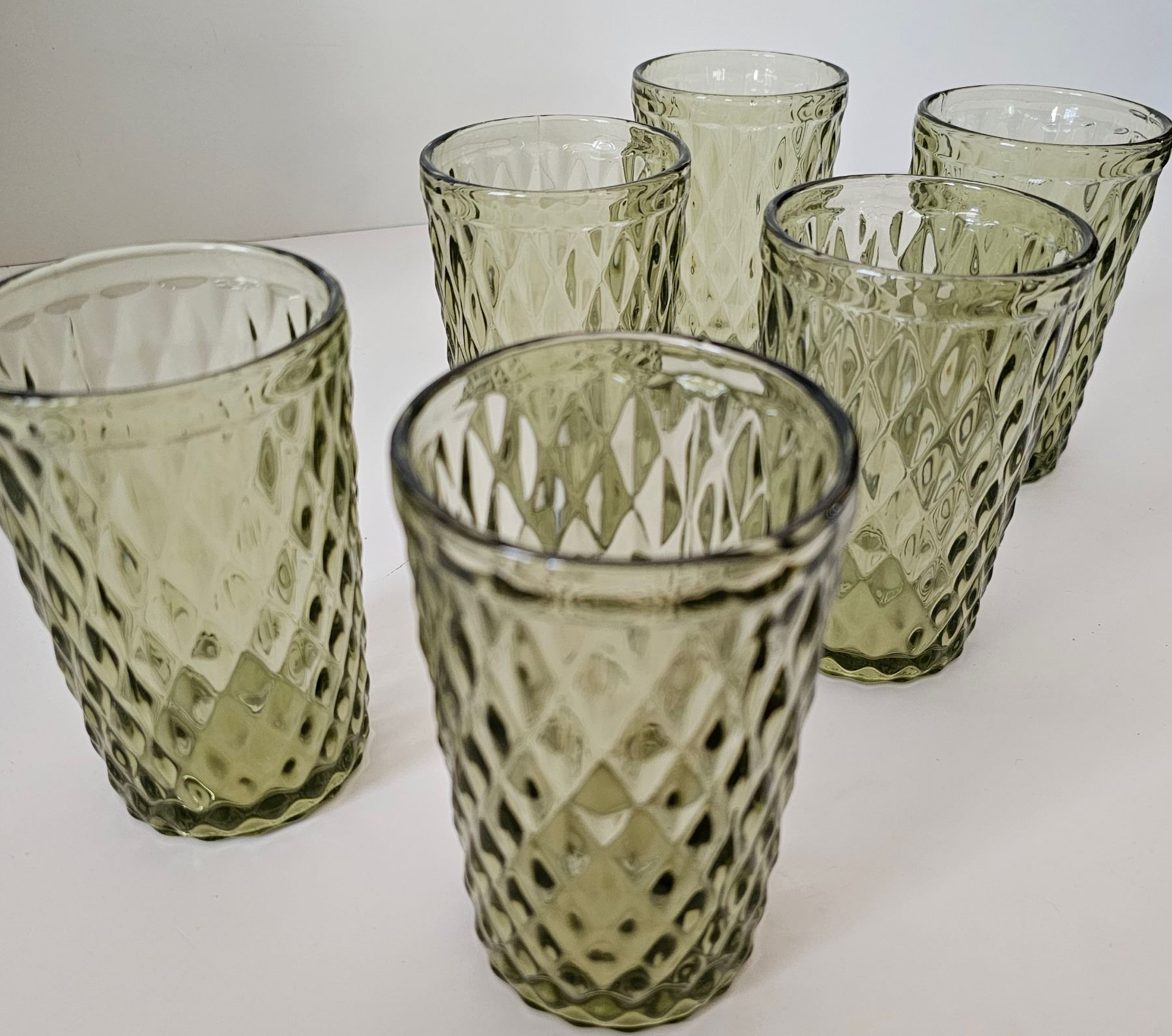 Bandesun, Green Drinking Glass, Set of 6 - Tumbler, Open Box, Like New Condition